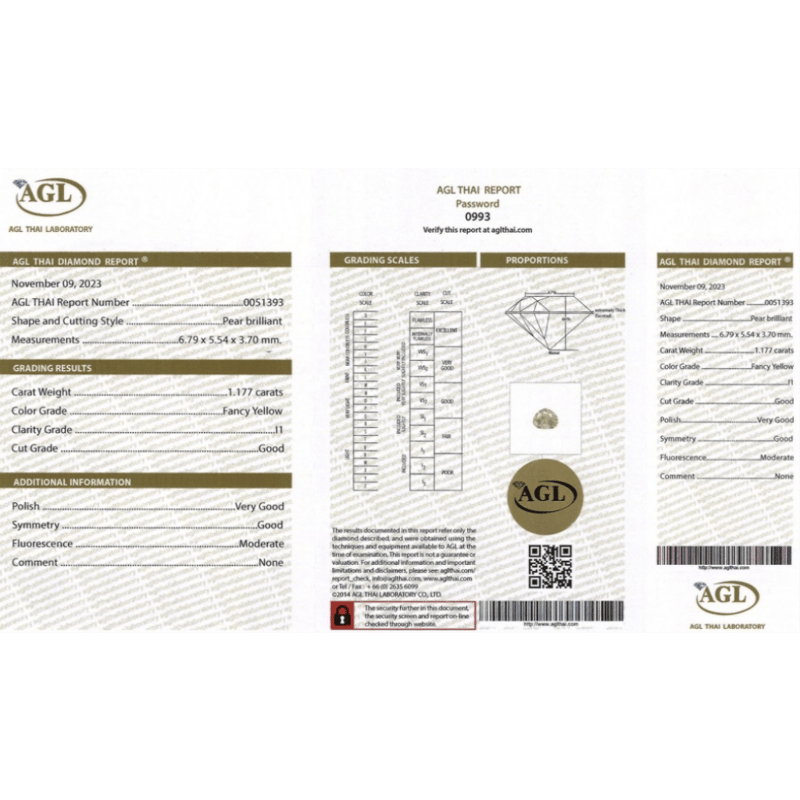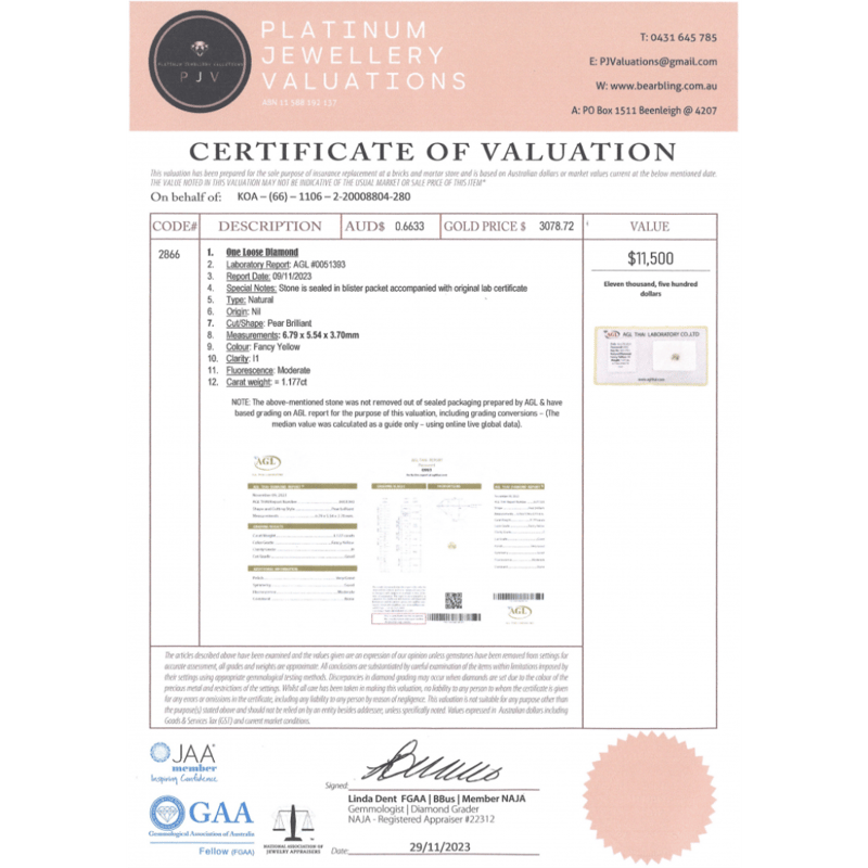 Pear Brilliant Cut, Fancy Yellow, I1 Clarity, Loose, Unset. Stone Comes Sealed With Agl Report: 0051393.