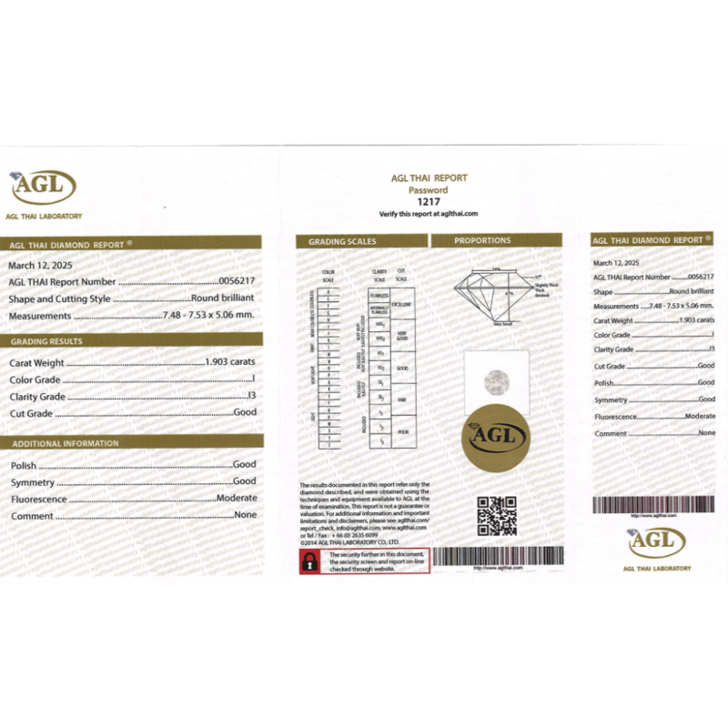 Round Brilliant Cut, I Colour, I3 Clarity, Loose, Unset. Stone Comes Sealed With Agl Report: 0056217.