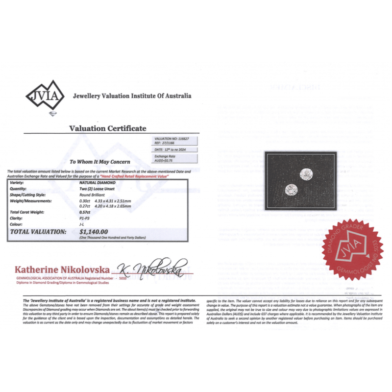 Round Brilliant, J-L Colour, P1-P3 Clarity, Loose, Unset.