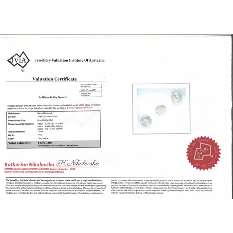 1.52CT TDW X 3, NATURAL FANCY YELLOW DIAMONDS