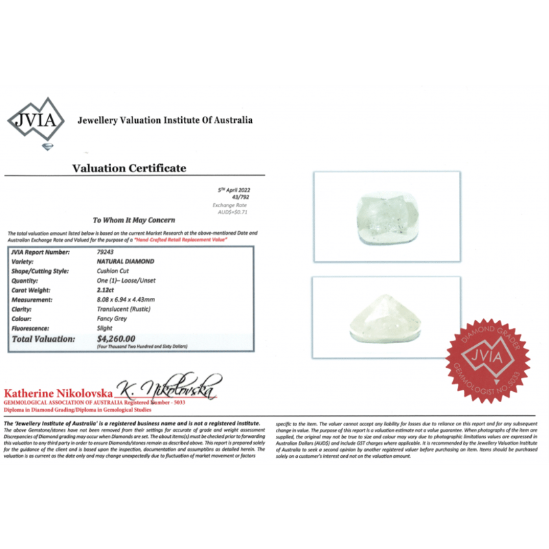 Cushion Cut, Fancy Grey, Translucent, Loose, Unset.