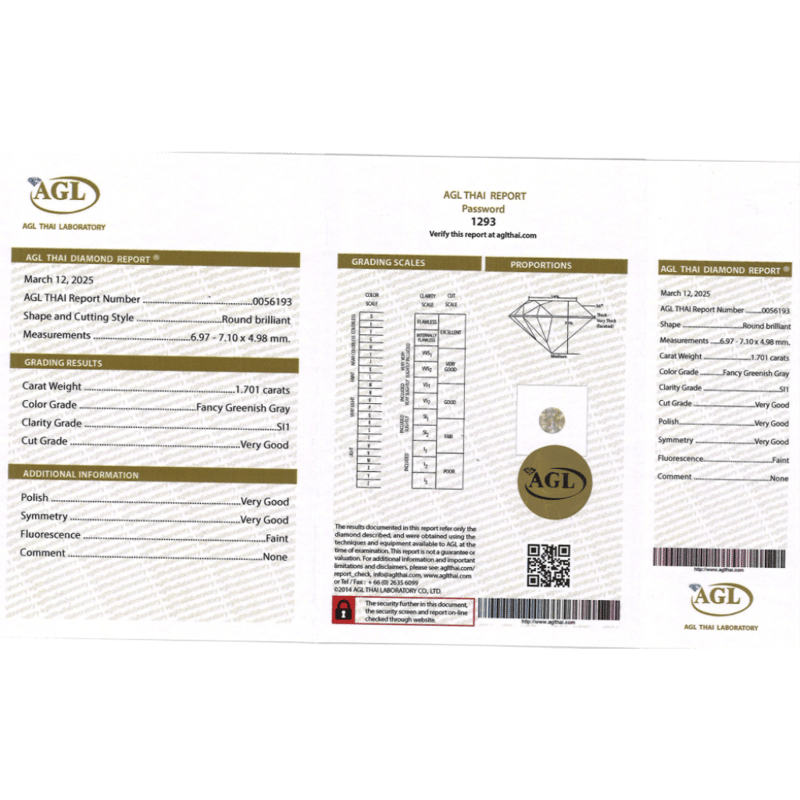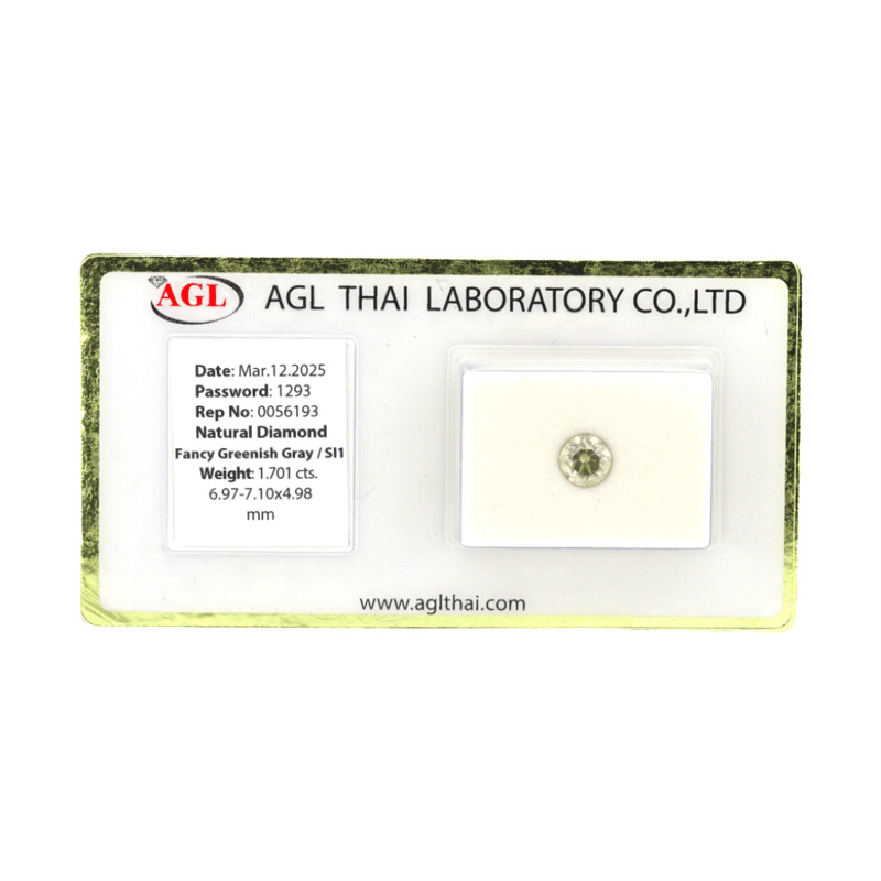 Round Brilliant Cut, Fancy Greenish-Grey Colour, Si1 Clarity, Loose, Unset. Stone Comes Sealed With Agl Report: 0056193.