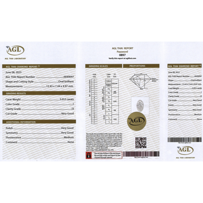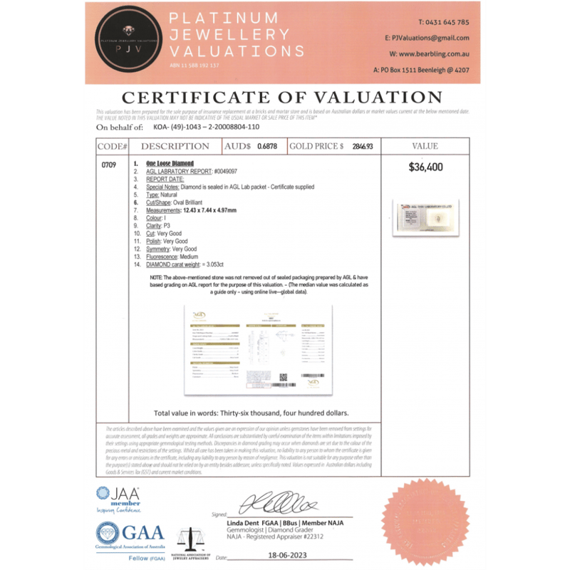 Oval Brilliant Cut, I Colour, P3 Clarity, Loose, Unset. Stone Comes Sealed With Agl Report: 0049097.