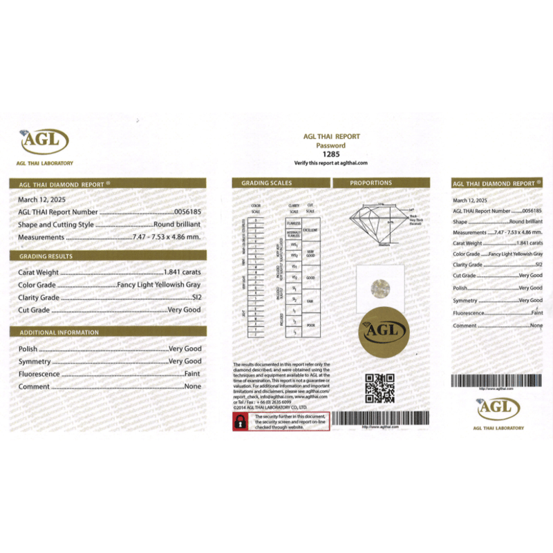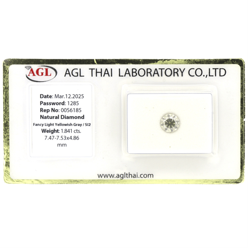Round Brilliant Cut, Light Fancy Yellowish-Grey Colour, Si2 Clarity, Loose, Unset. Stone Comes Sealed With Agl Report: 0056185.