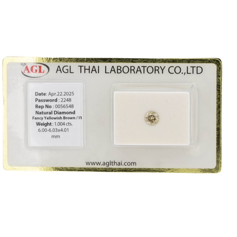 Round Brilliant Cut, Fancy Yellowish-Brown, I1 Clarity. Stone Comes Sealed With Agl Report: 0056548.