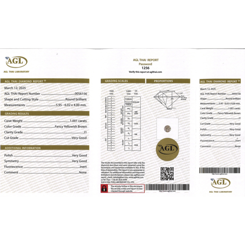 Round Brilliant Cut, Fancy Yellowish-Brown, I1 Clarity, Loose, Unset. Stone Comes Sealed With Agl Report: 0056156.