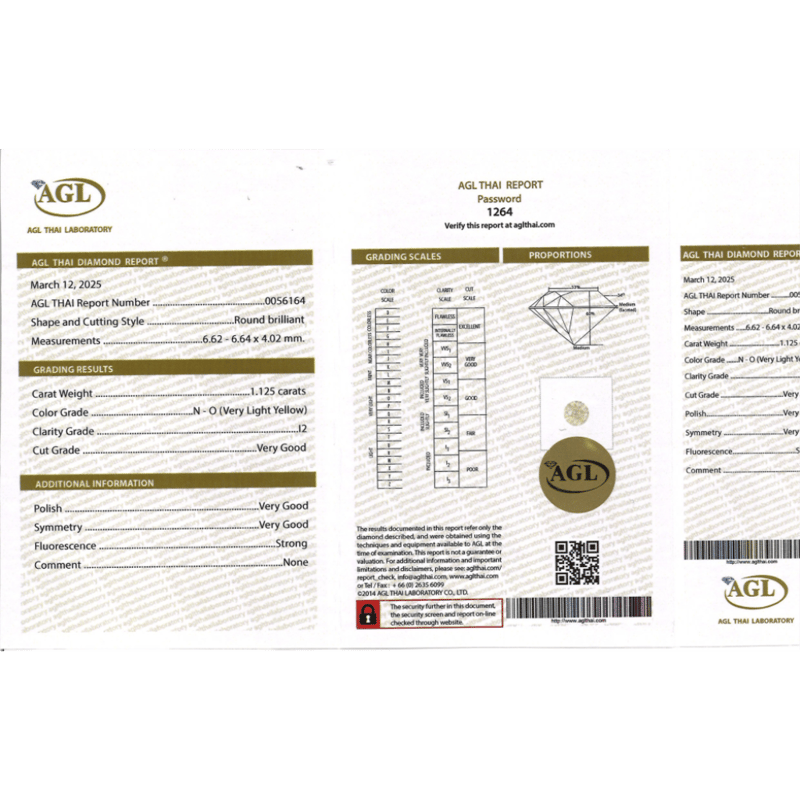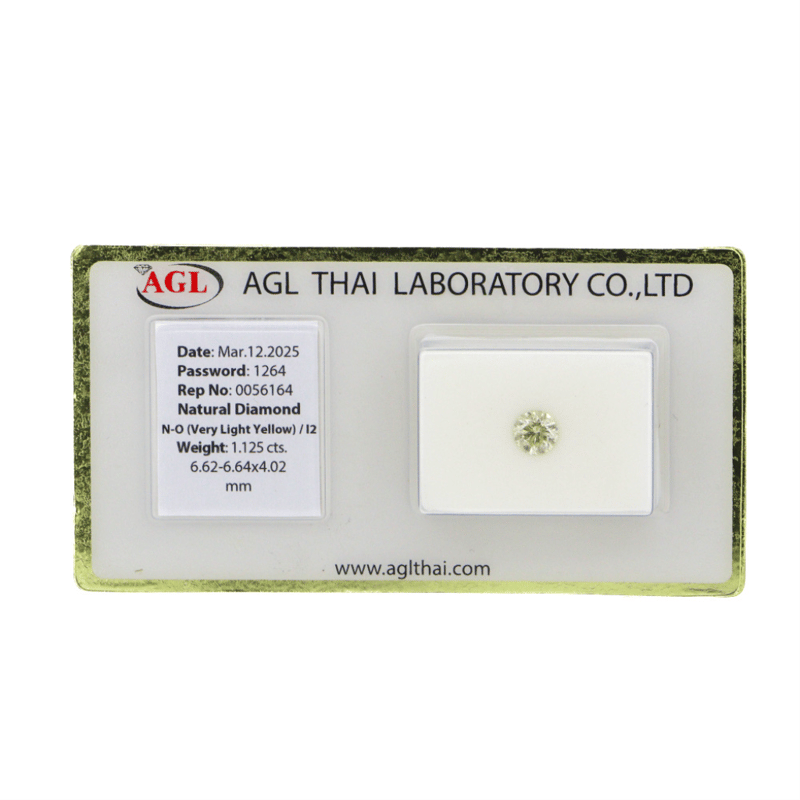 Round Brilliant Cut, Very Light Yellow Colour, I2 Clarity, Loose, Unset. Stone Comes Sealed With Agl Report: 0056164.