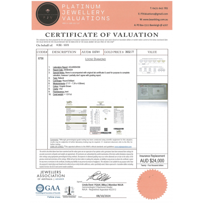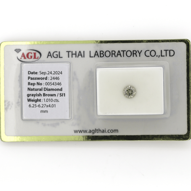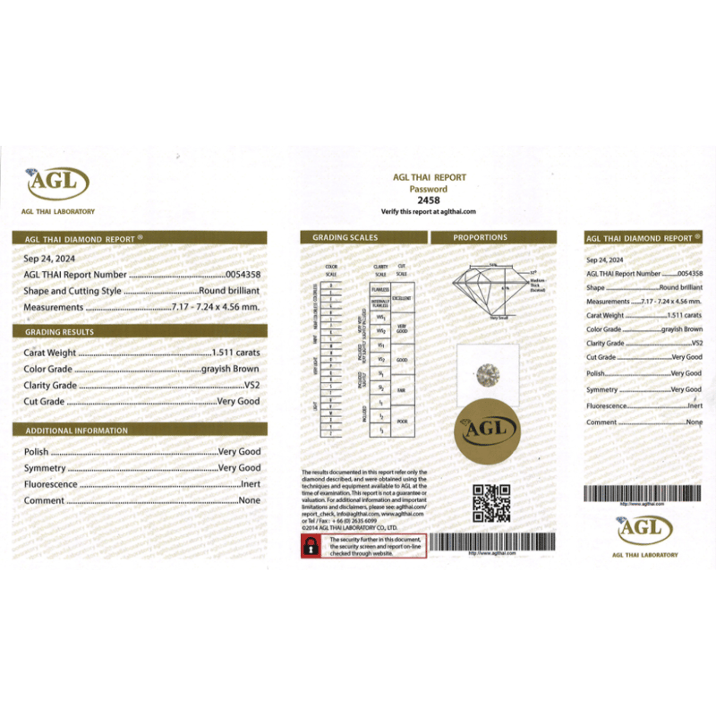 Round Brilliant Cut, Greyish-Brown Colour, Vs2 Clarity, Loose, Unset. Stone Comes Sealed With Agl Report: 0054358.