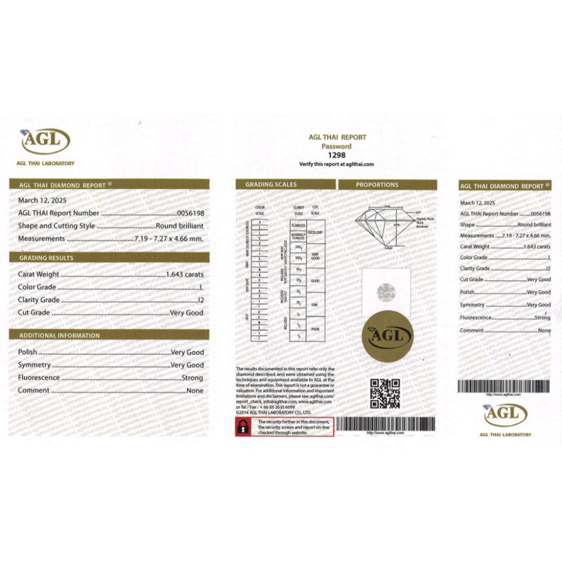 Round Brilliant Cut, L Colour, I2 Clarity, Loose, Unset. Stone Comes Sealed With Agl Report: 0056198.