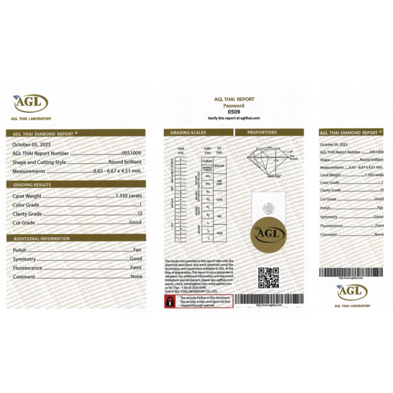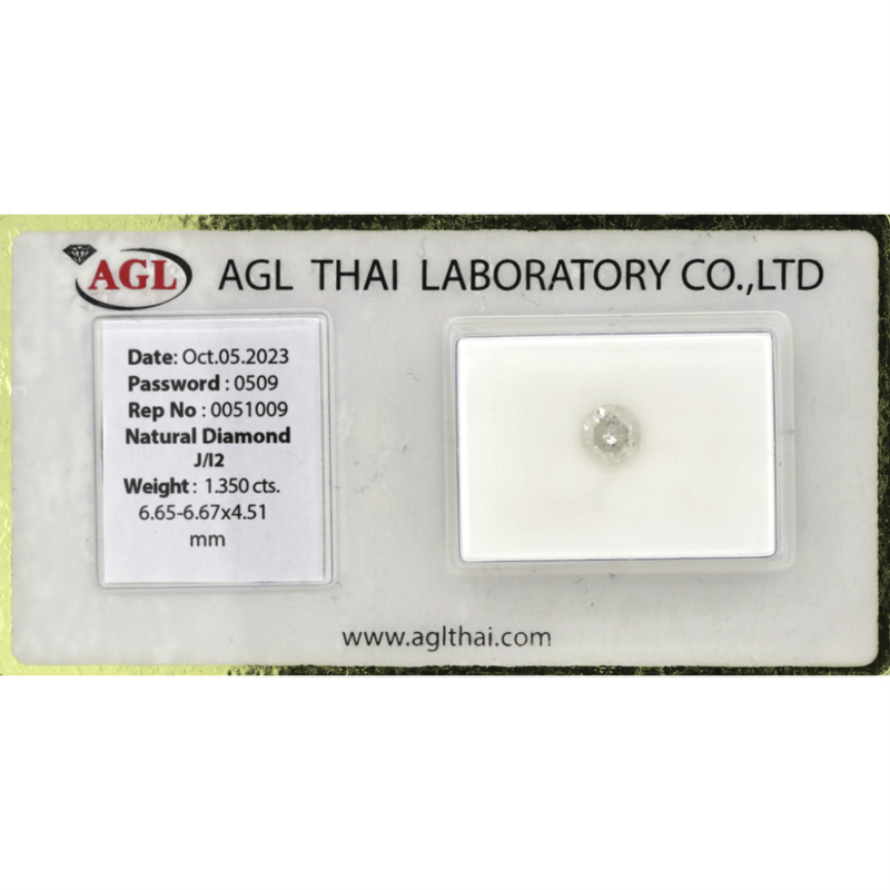 Round Brilliant Cut, J Colour, I2 Clarity, Loose, Unset. Stone Comes Sealed With Agl Report: 0051009.