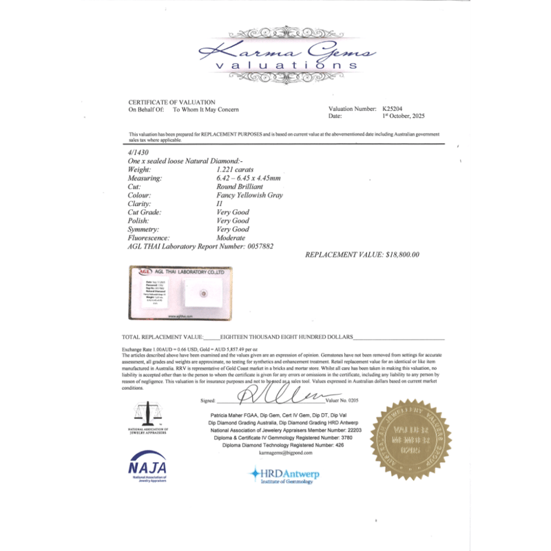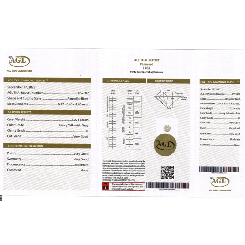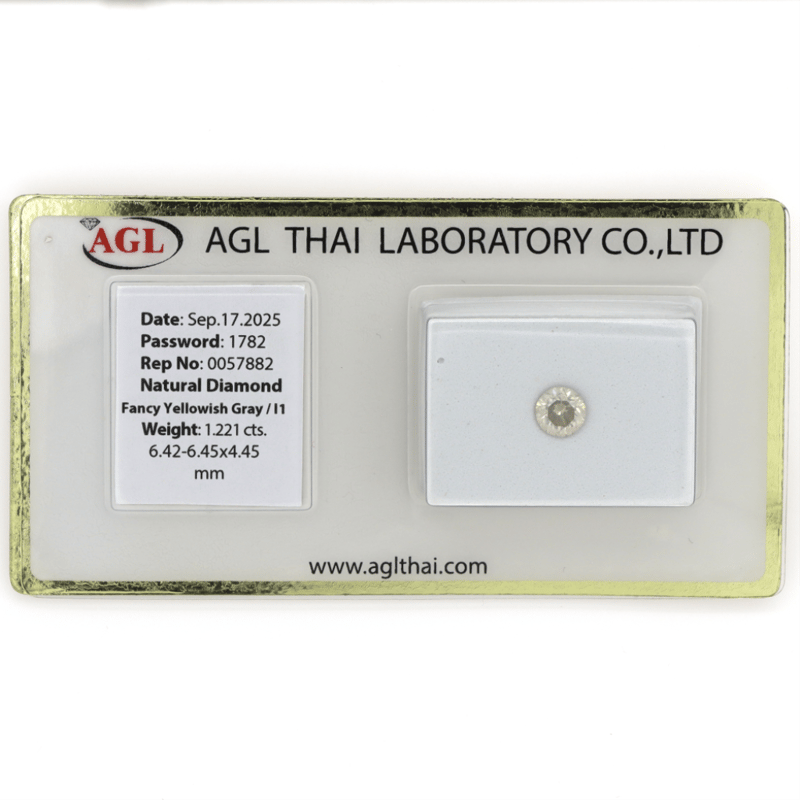 Round Brilliant Cut, Fancy Yellowish-Grey Colour, I1 Clarity, Loose, Unset. Stone Comes Sealed With Agl Report: 0057882.