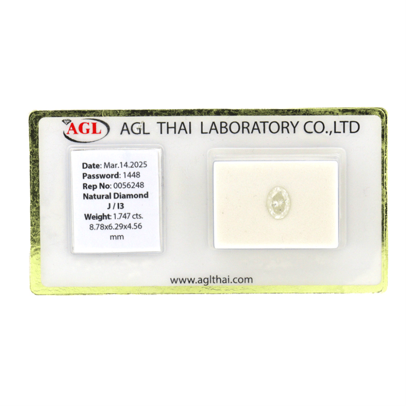 Oval Brilliant Cut, J Colour, I3 Clarity, Loose, Unset. Stone Comes Sealed With Agl Report: 0056248.