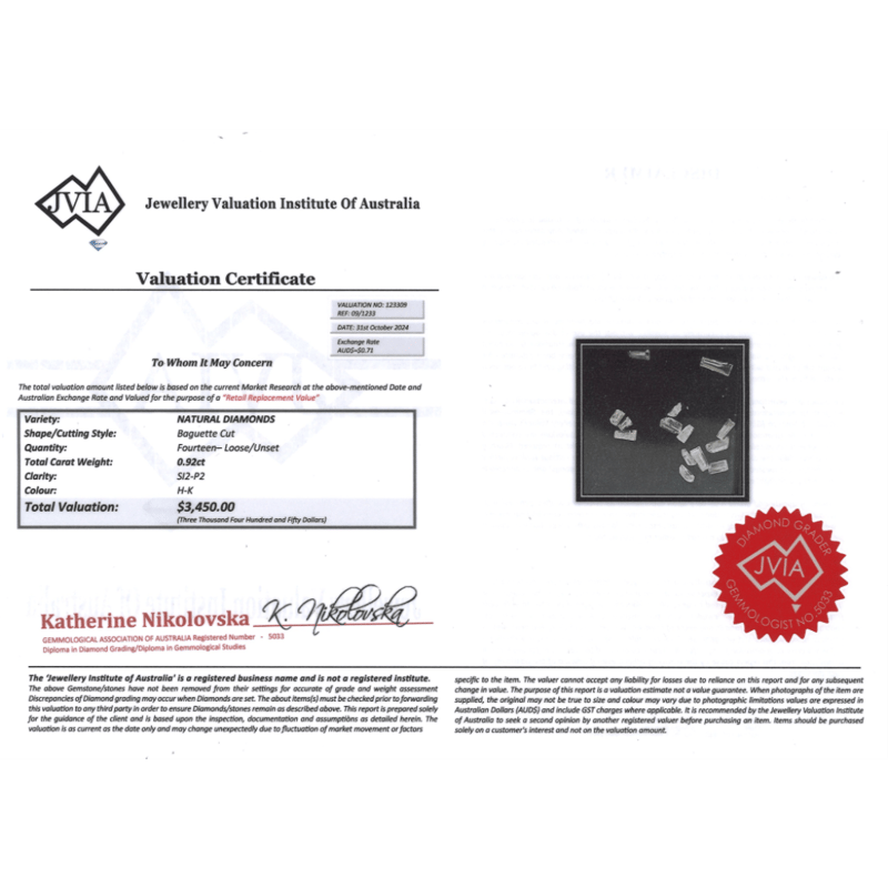 Baguette Cut, H-K Colour, Si2-P2 Clarity, Loose, Unset.