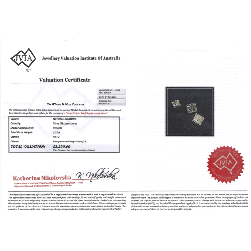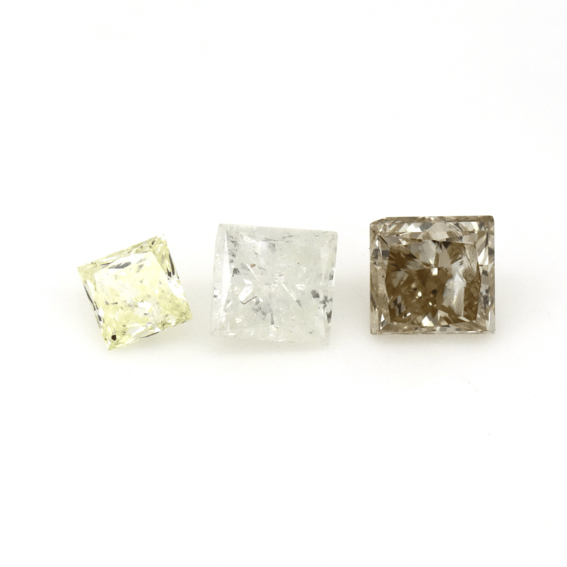 Princess Cut, Fancy Brown/Yellow J-K Colour, P1-P2 Clarity, Loose, Unset.