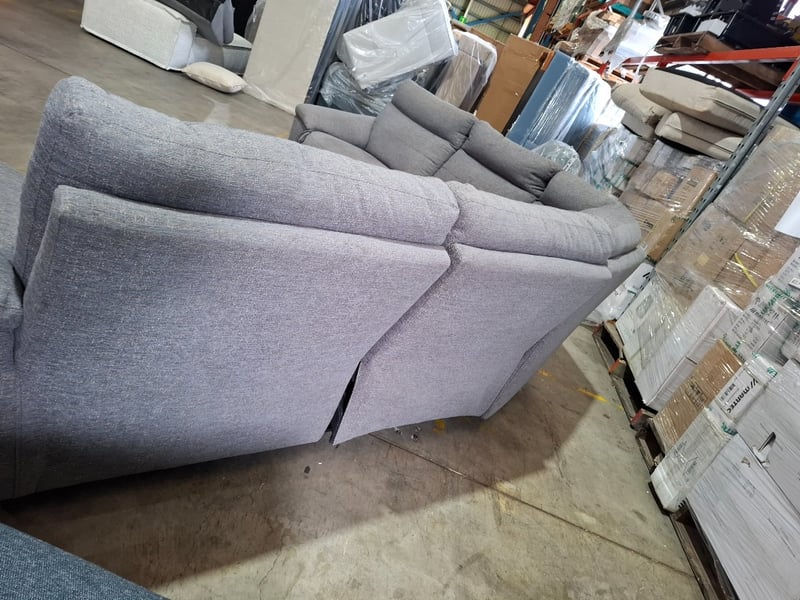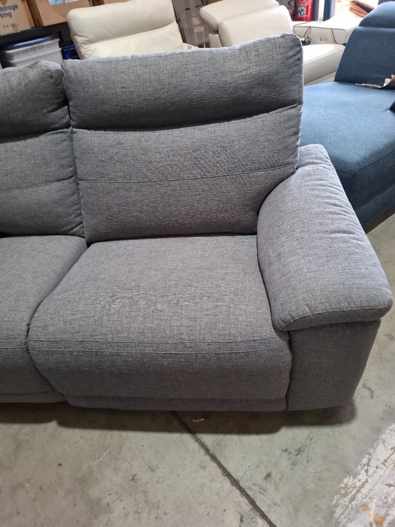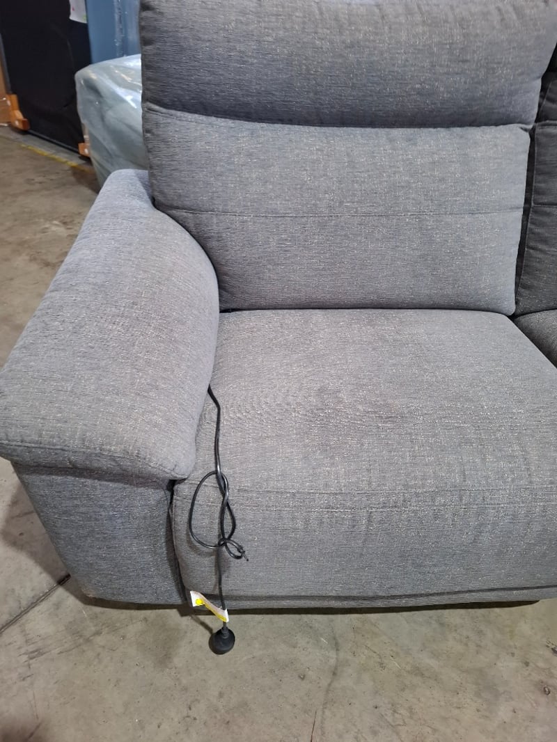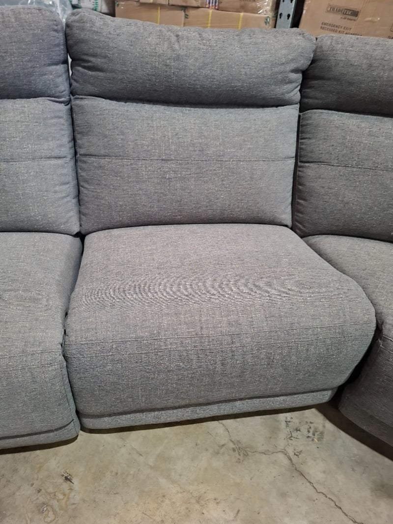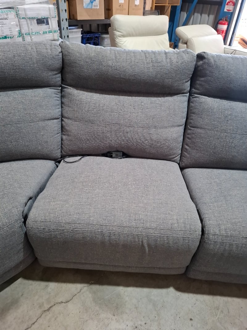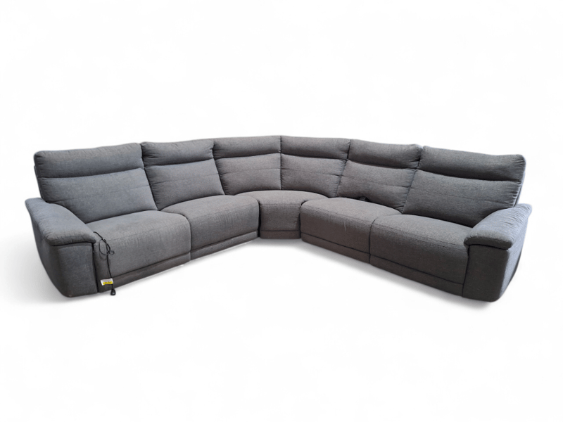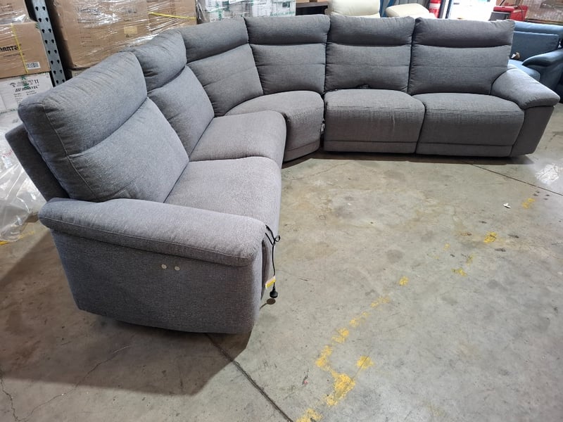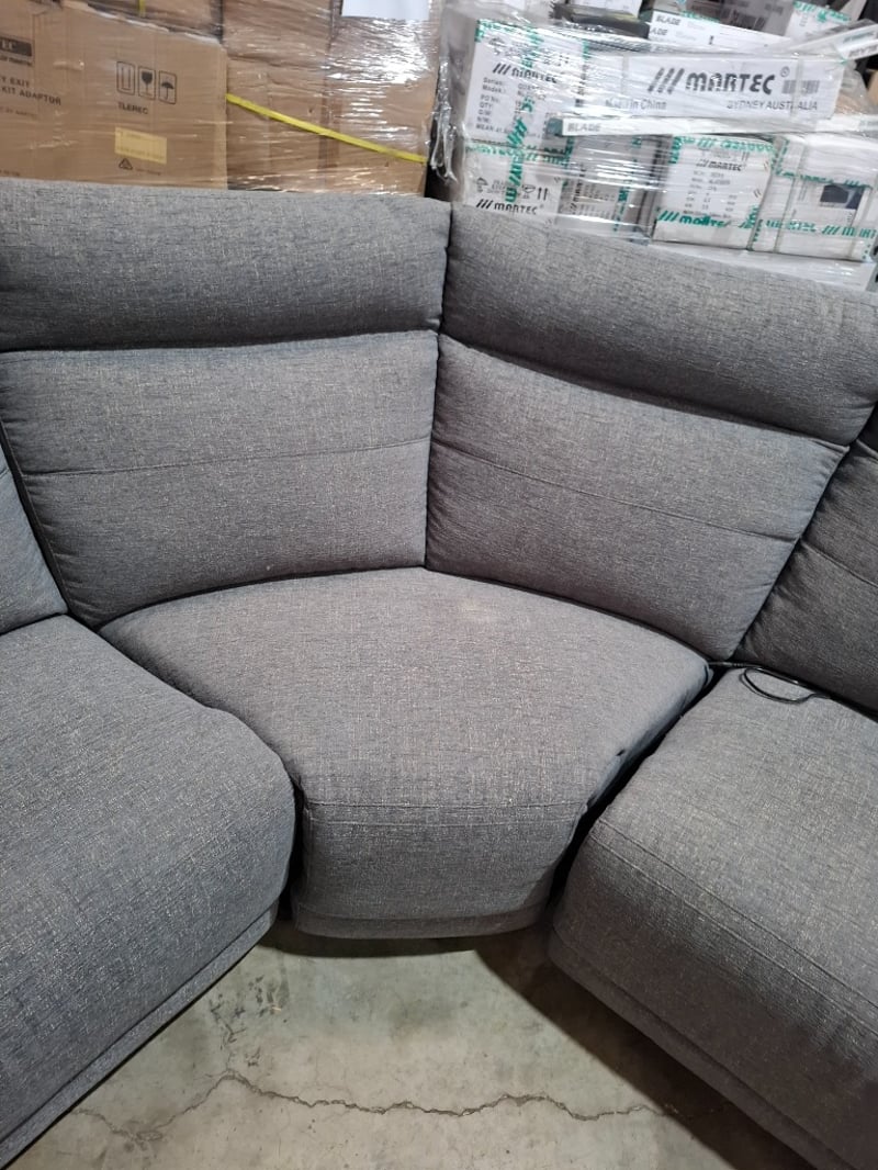 RRP $4390 6 seater corner modular with electric recliners , grey/silver fabric, includes 2 electric recliner