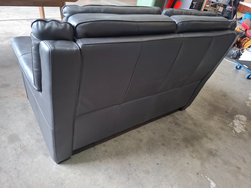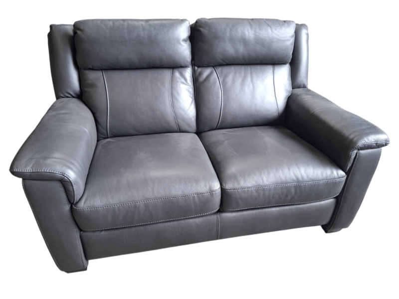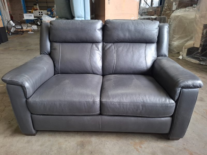 RRP $3790 2 seats sofa , leather colour dark grey Dimensions: 150cm(W)x 100cm(D)x 100cm(H) Note: minor cleaning required