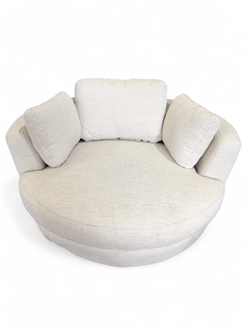 RRP $2890 Sadie Swivel Armchair Natural Dimensions: 135cm W x 137cm L x 89cm H