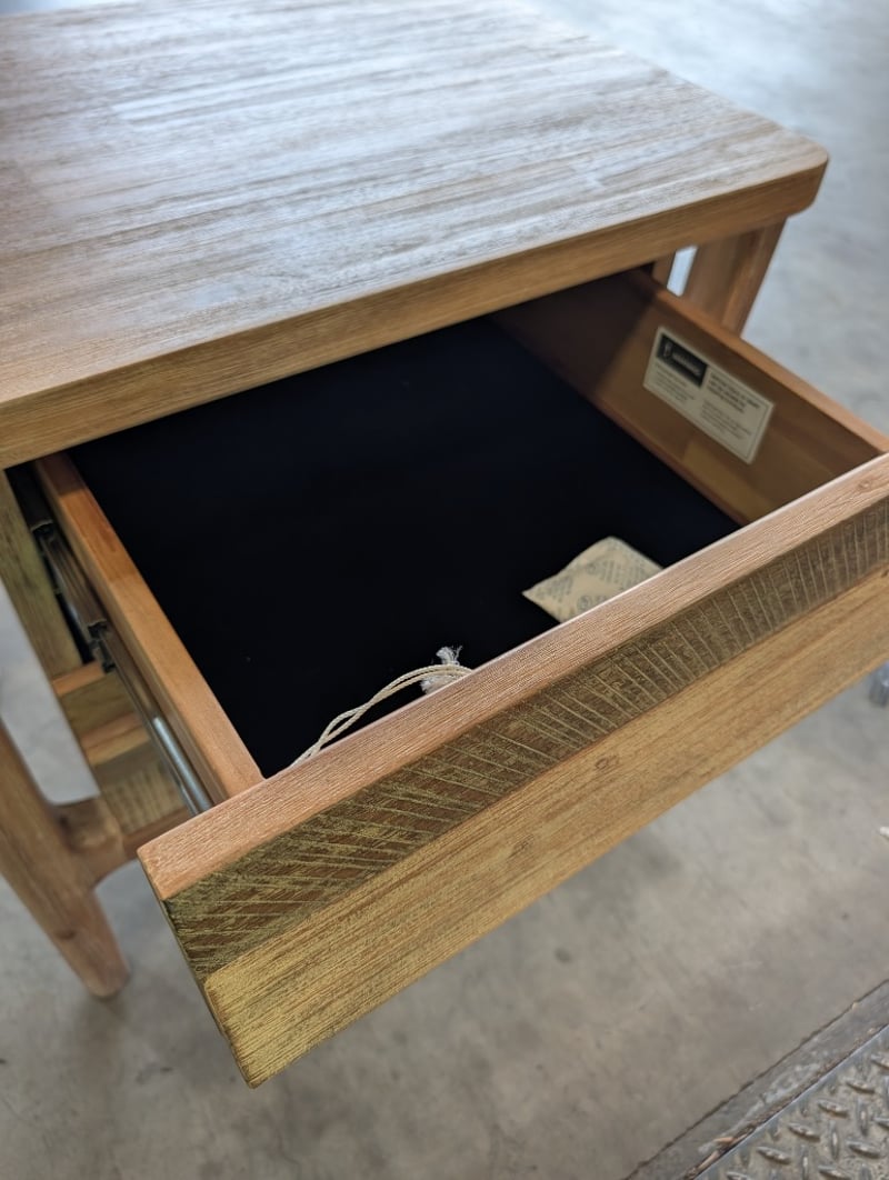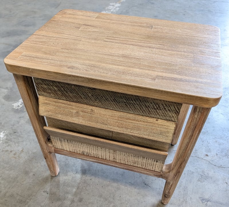 RRP $590, Timber Wash Oak Bedside Table With 2 Drawers