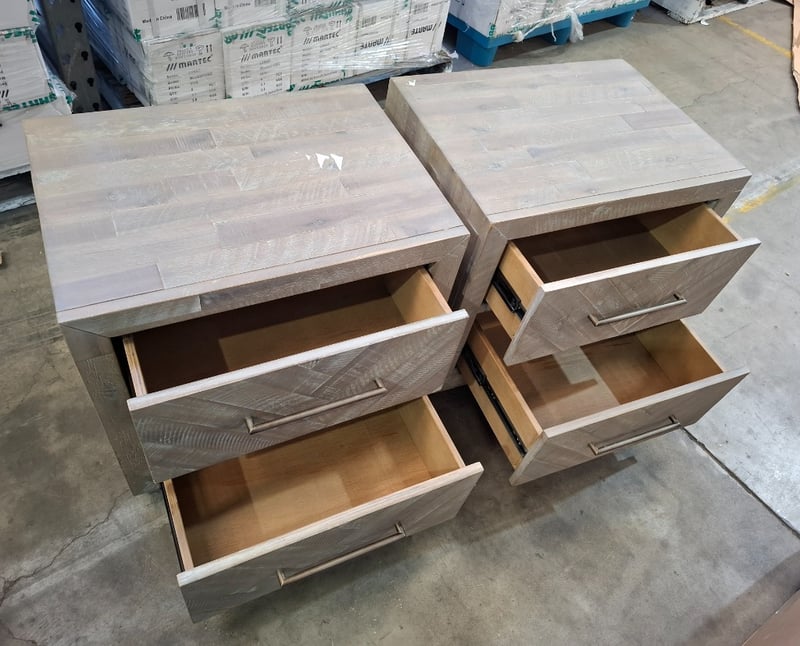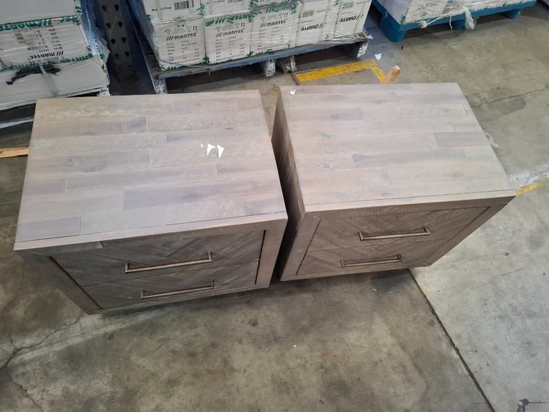 RRP $249, 2x Bedside table, acacia/greyDimensions : 60cmW x 44cmD x 58cmHNote: inspection Recommended