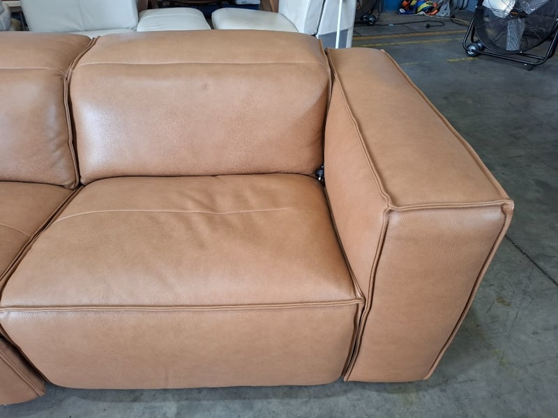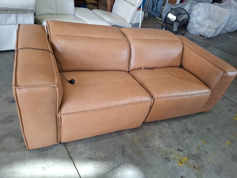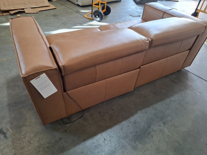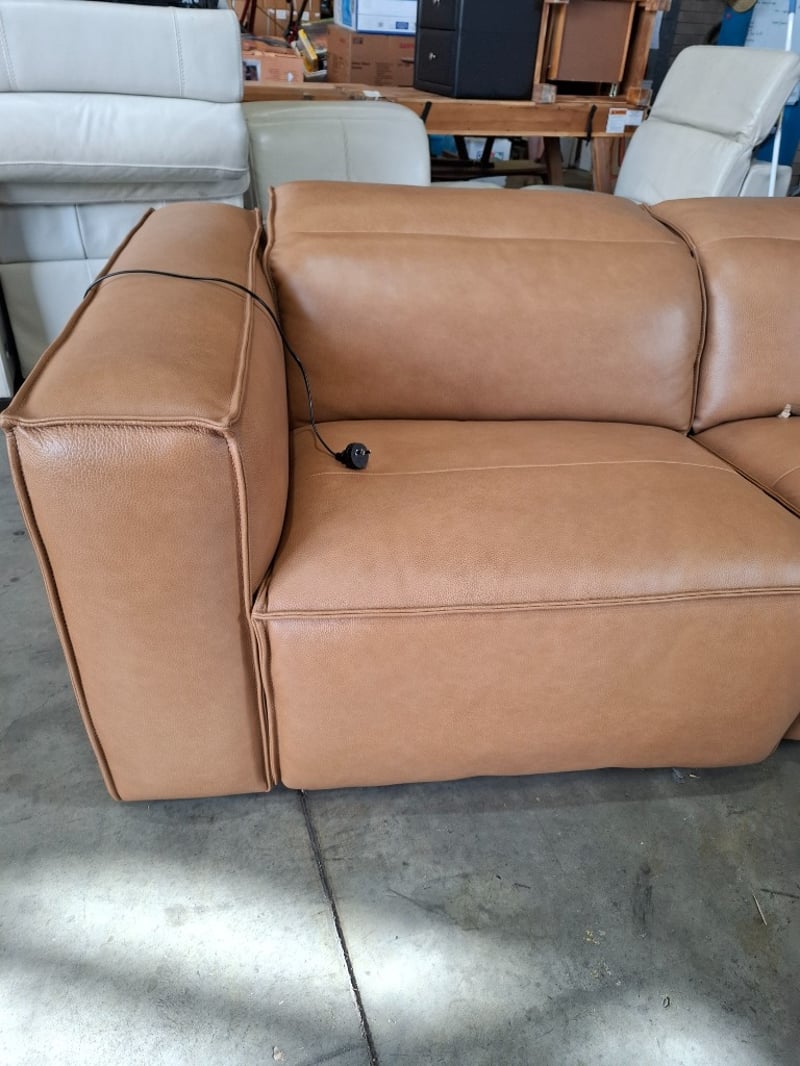 RRP $3,990, Tan colour leather couch, 2seater electric recliner