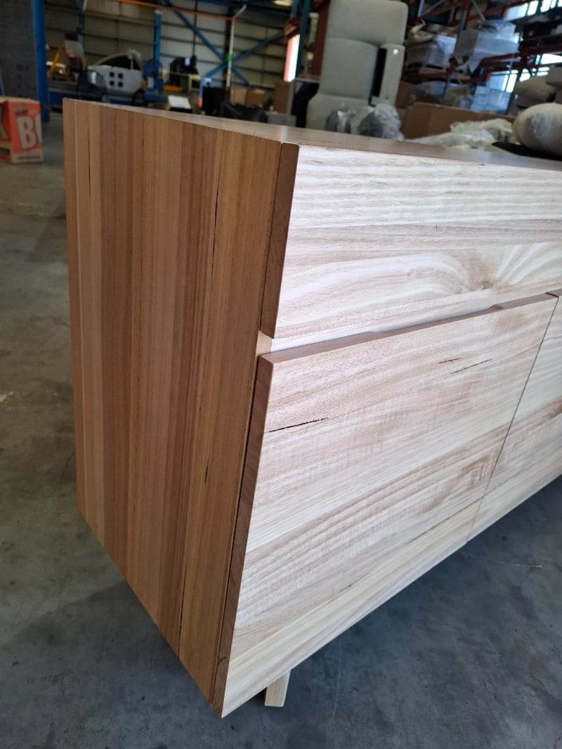 RRP $1,790, Wooden Buffet, oak natural wash finish, 3 doors, 3 drawers. Timber legs.