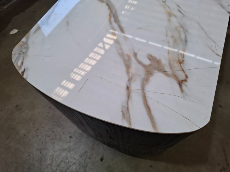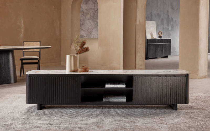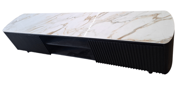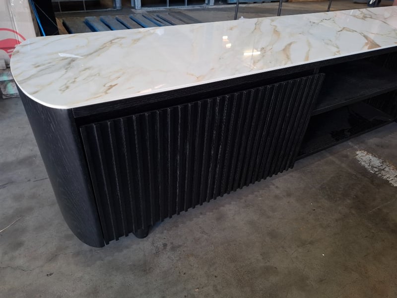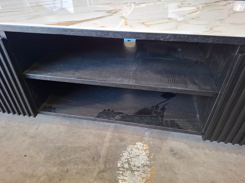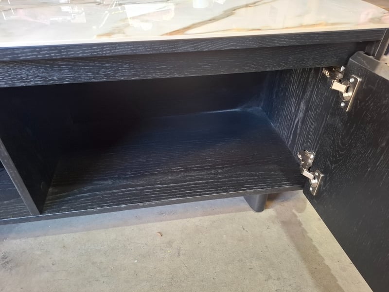 RRP $1,490, TV unit, ceramic top, black timber, 2 doors , 2 tiers