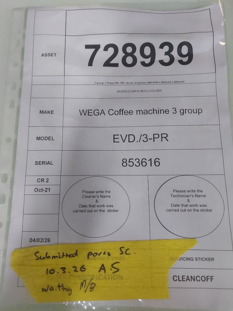 WEGA Coffee Machine 3 Group, 1 Phase HW, TBC, Black, Scratches