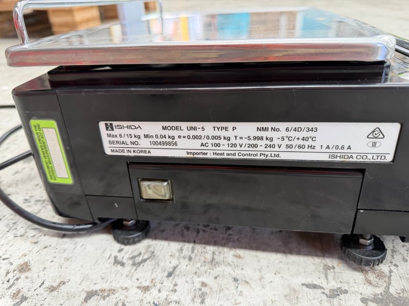 Ishida Digital Scales, Model: UNI-5, 1 Phase, 10Amp, Black, On Counter, Scratches & Dents