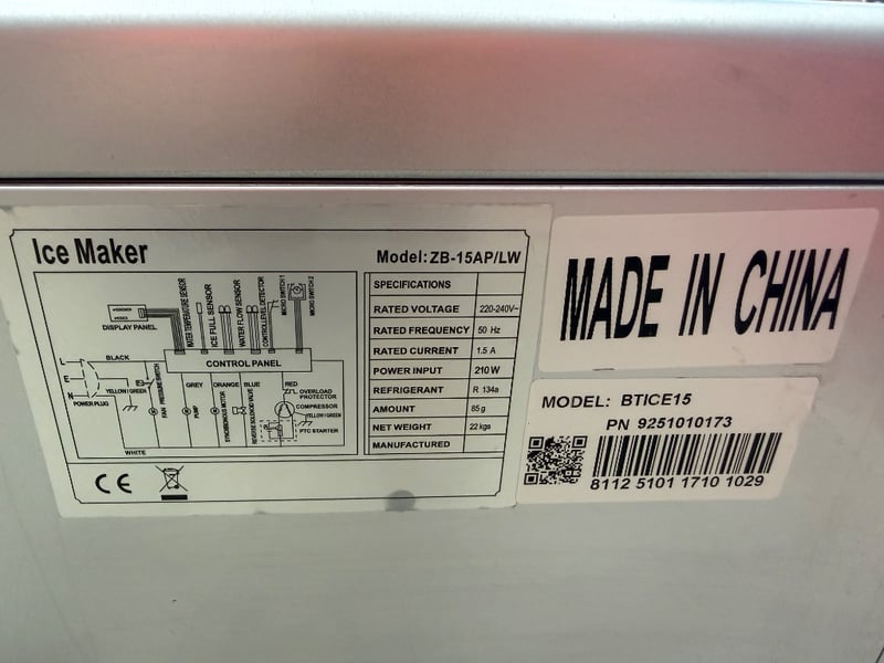 Royston Ice Machine, Model: ZB-15AP/LW, Refrigerated, 1 Door, Motor on Bottom, 1 Phase, 10Amp, Grey, On Counter, Scratches & Dents