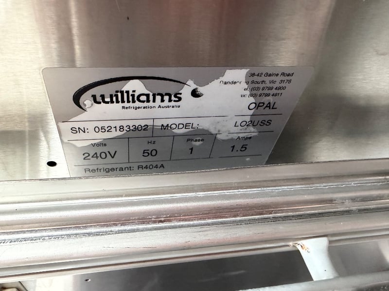 Williams Undercounter Bench Fridge, Model: LO2USS, Refrigerated, 2 Door, Motor on LHS, 1 Phase, 10Amp, Stainless Steel, Undercounter, Scratches & Dents Approx Dimensions: 142Wx 65Dx 88H cm