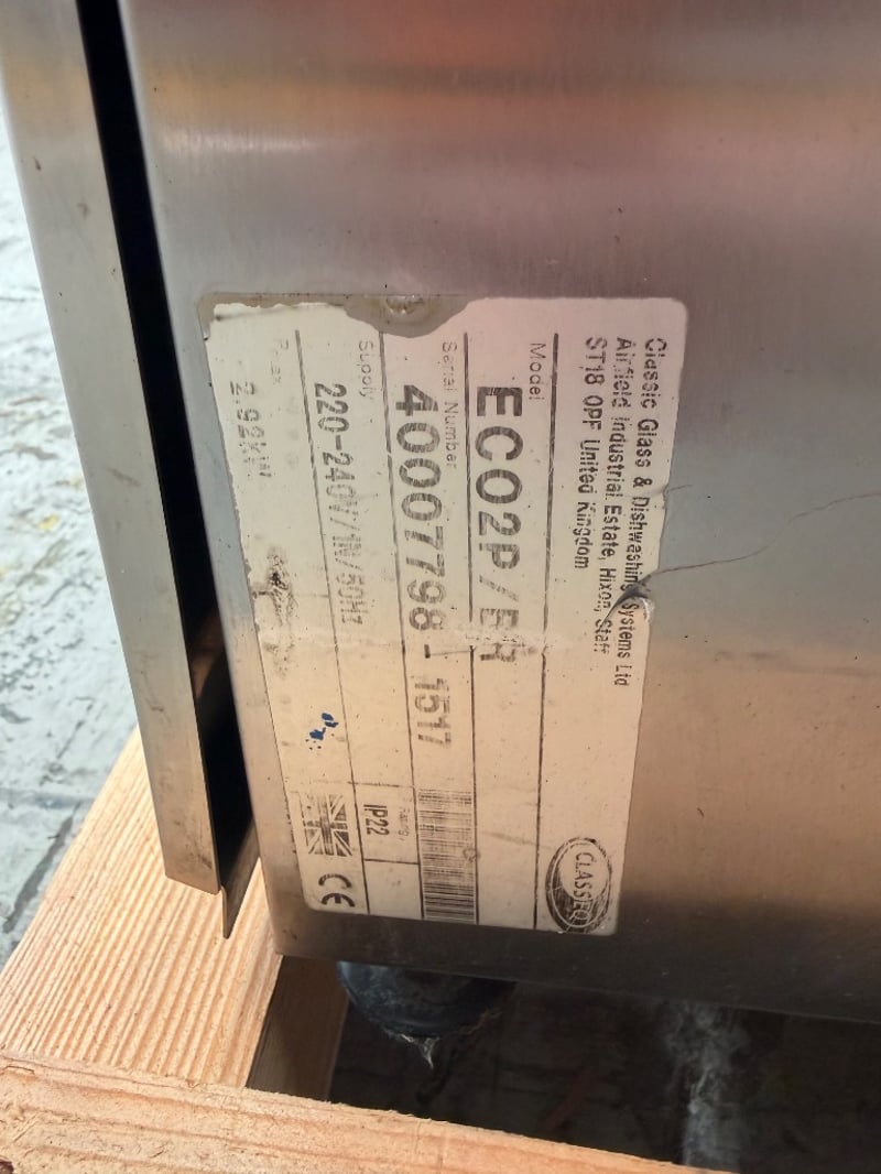 Classeq Glass Washer, Model: ECO2P/BR, 1 Phase, 15Amp, Stainless Steel, Undercounter, Scratches & Dents
