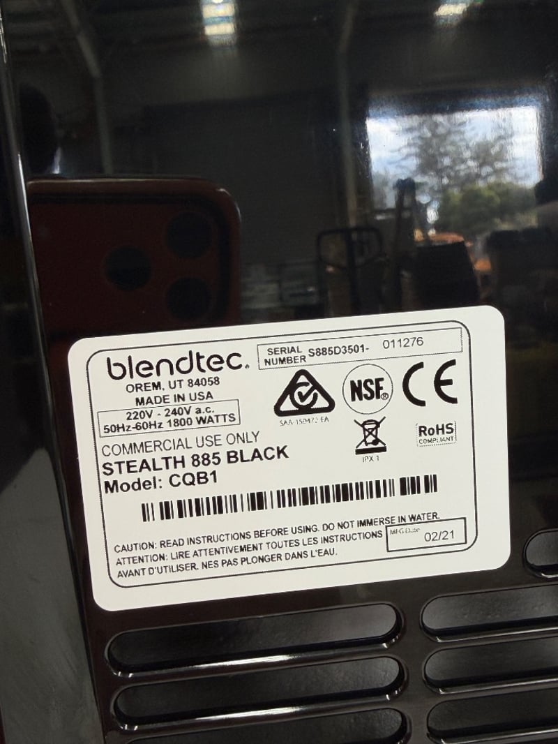 Blendtec Blender W/ Sound Barrier, Model: CQB1, 1 Phase, 10Amp, Black, On Counter, Scratches & Dents