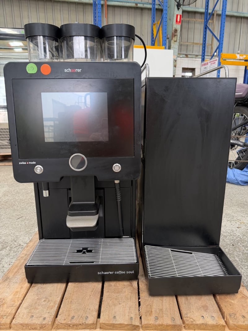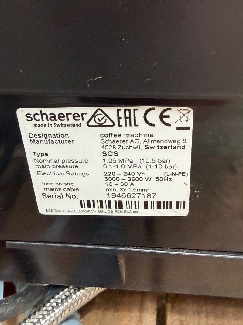 Schaerer Coffee Machine Automatic w/Milk Fridge, Model: SCS, 1 Phase, 15 Amp, Black, On Counter, Scratches & Dents Dimensions: 33Wx 59Dx 74H