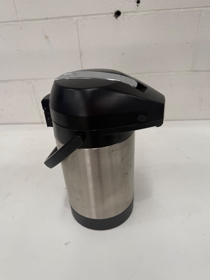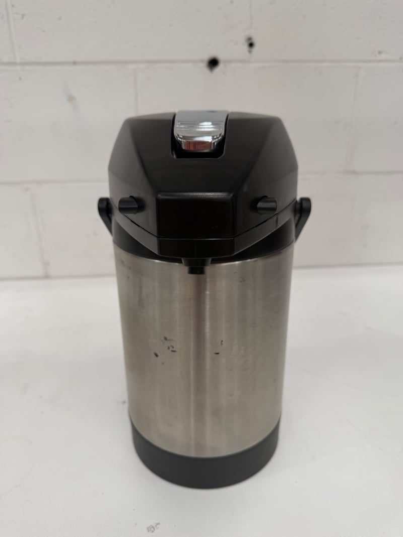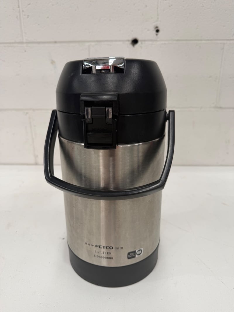 Fetco Pump Lever Airpot, Model: 22B, Stainless Steel, On Counter, Scratches & Dents Approx Dimensions: 18Wx 22.5Dx 32H cm