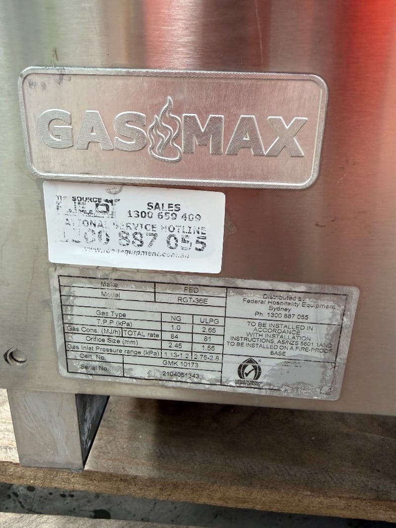 Gasmax Griddle-Flat, Model: RGT-36E, 3 Burners, With stand, TBC, Stainless Steel, Freestanding, Scratches & Dents