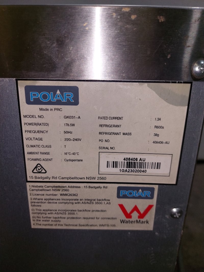 Polar G-Series commercial countertop ice maker. Model: GK031-ASerial number: 408406-AUDims: 62cm H, 38cm L, 47cm WNote: item untested, signs of wear.