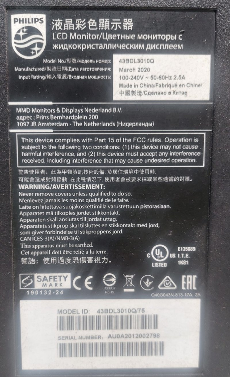 Model: 43BDL3010Q/75