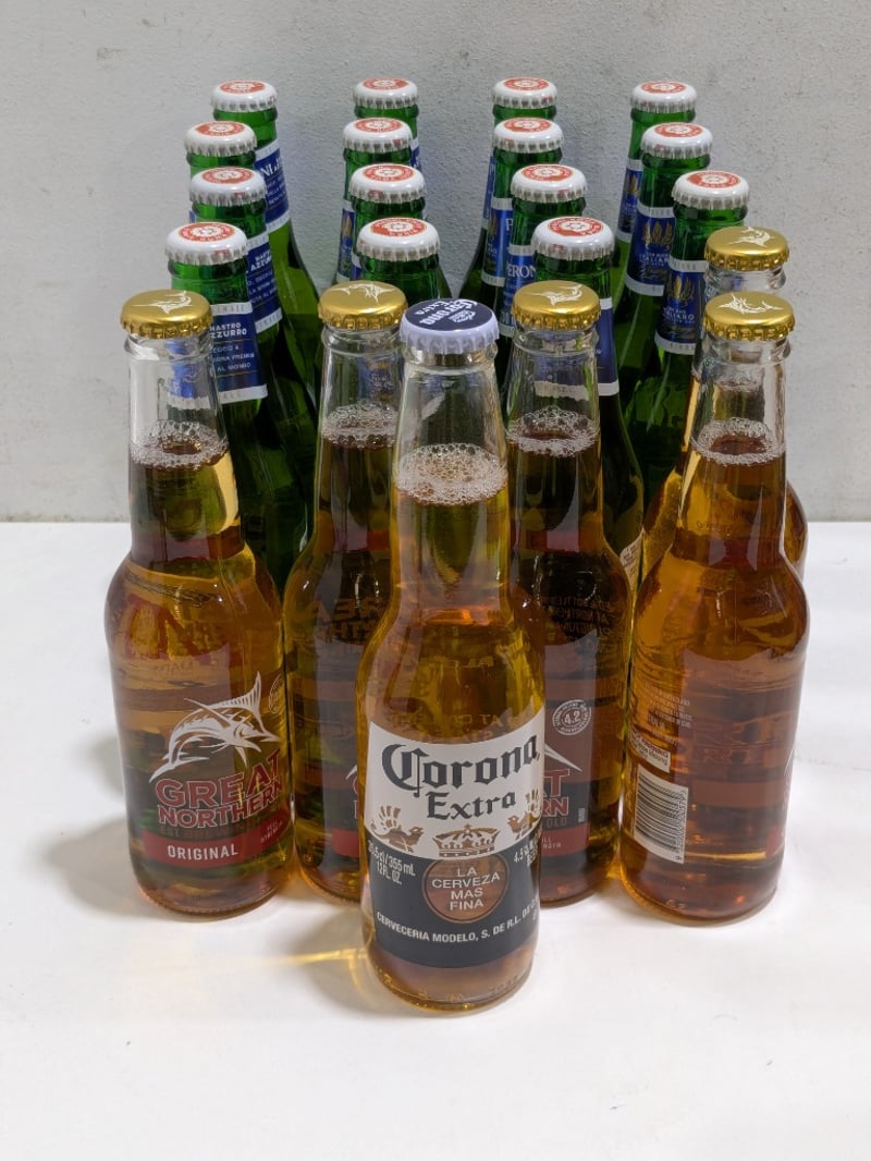 Assorted beer lot of various brands including Corona, Great Northern and more..