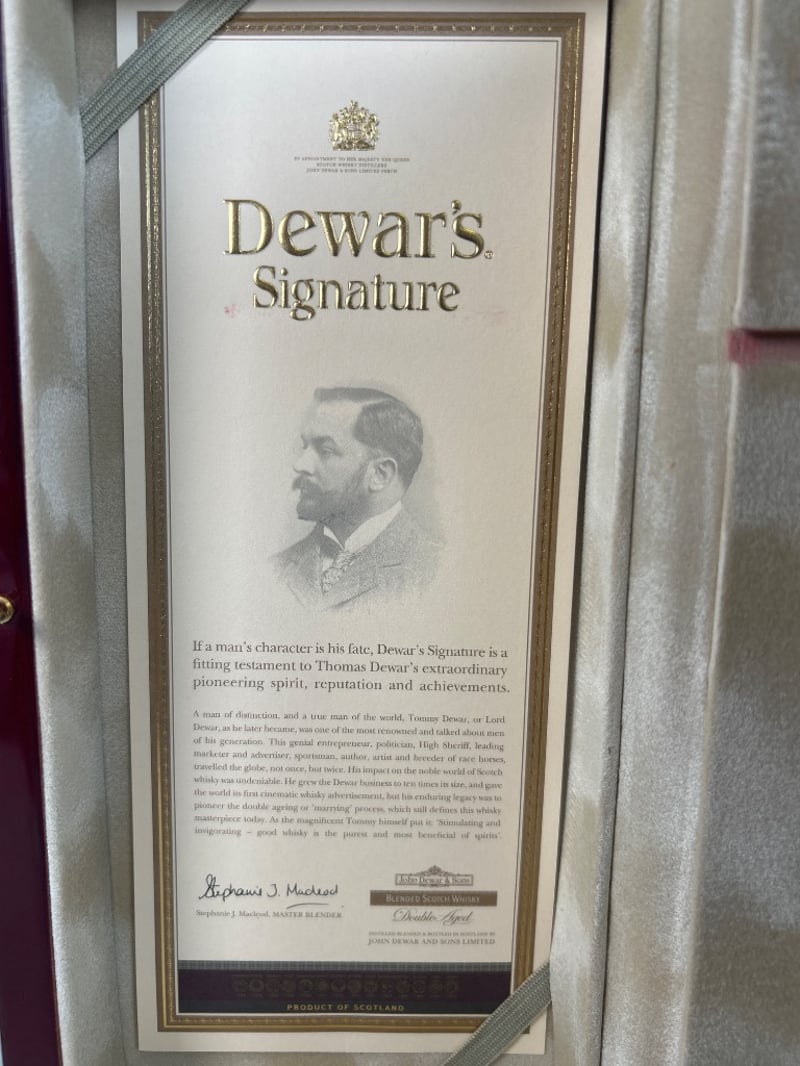 WHISKY, 2006 DEEWARS, SIGNATURE BLENDED SCOTCH WHISKY, BOTTLE NUMBER: AA13523, 43%, 1 x 750ML BOTTLE, INCLUDES TIMBER CASE & INFORMATION CARD. ** IT IS AN OFFENCE TO SELL OR SUPPLY TO OR OBTAIN LIQUOR ON BEHALF OF A PERSON UNDER THE AGE OF 18 YEARS ** ** This Auction is ONLINE VIEWING ONLY and NATIONWIDE SHIPPING ONLY ** Prior to bidding, bidders can generate an affordable shipping quote for delivery anywhere in Australia by clicking 'Get Shipping Quote' found within the Lloyds Bidding Centre on every lot. *Nationwide shipping subject to item dimensions & the proposed destination meeting our freight partners criteria. #WINE