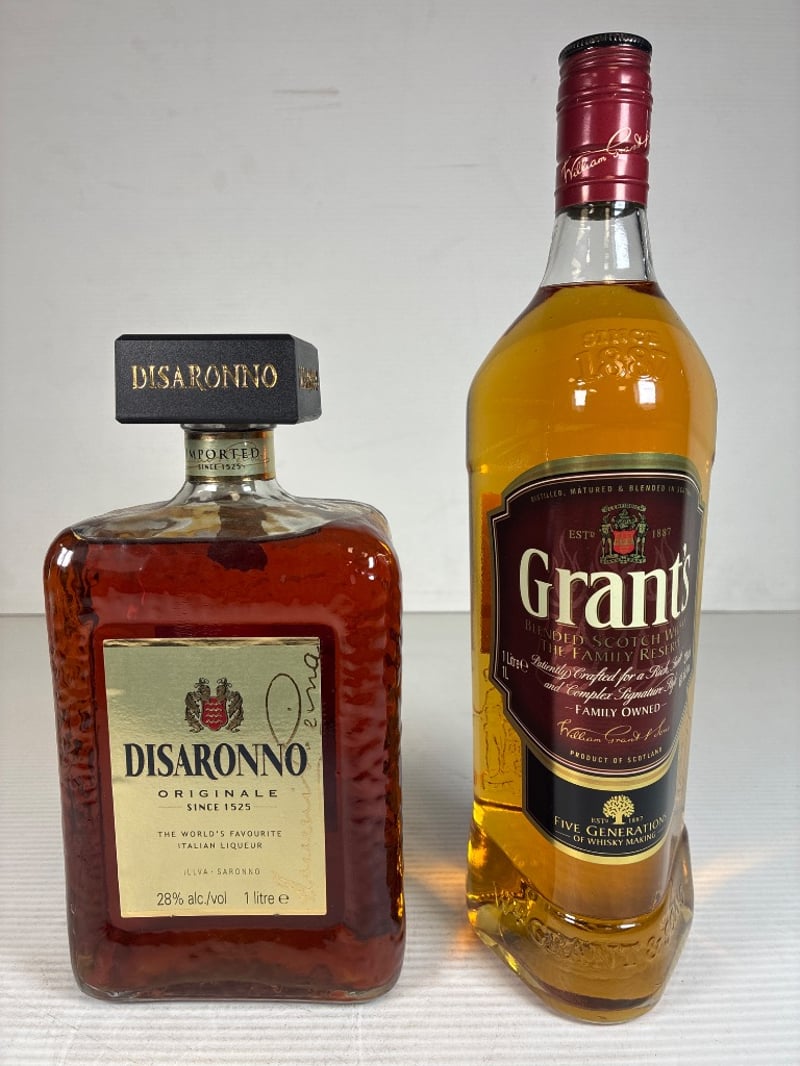 WHISKY, GRANTS, THE FAMILY RESERVE, BLENDED SCOTCH WHISKY, 43%, 1 x 1L BOTTLE & DISARONNO, ORIGANALE, LIQUEUR, 28%, 1 X 1L BOTTLE. SOLD AS LOT.