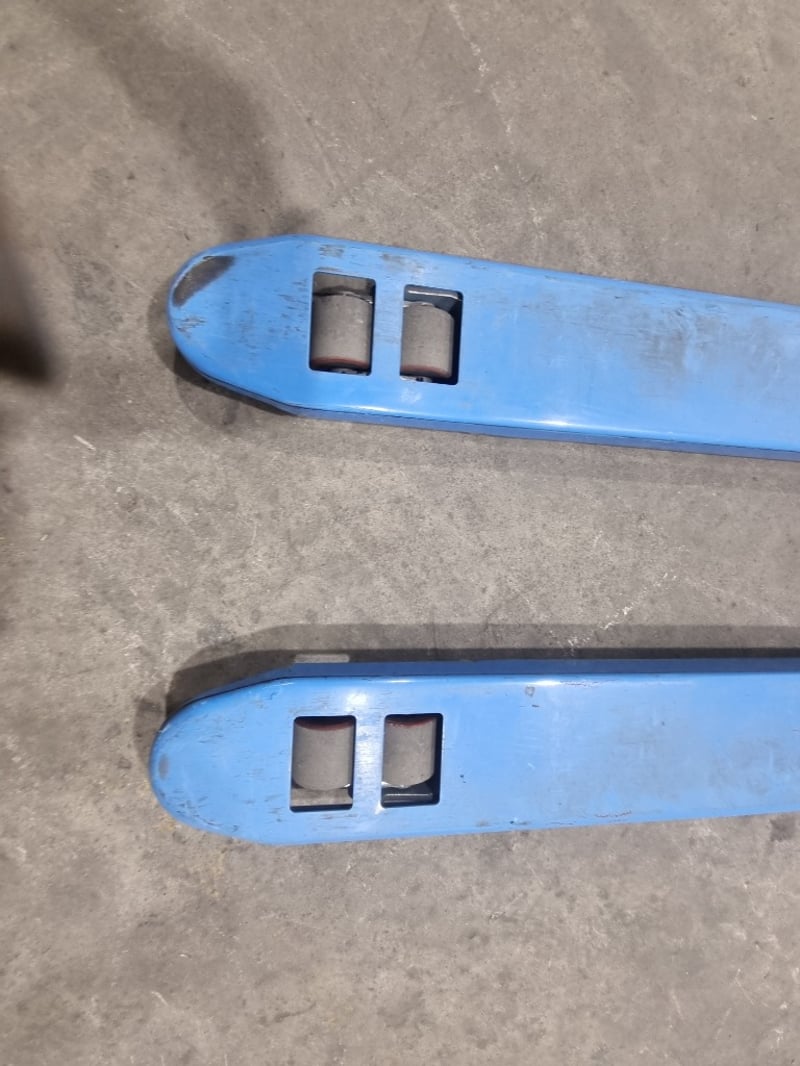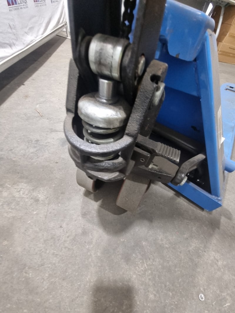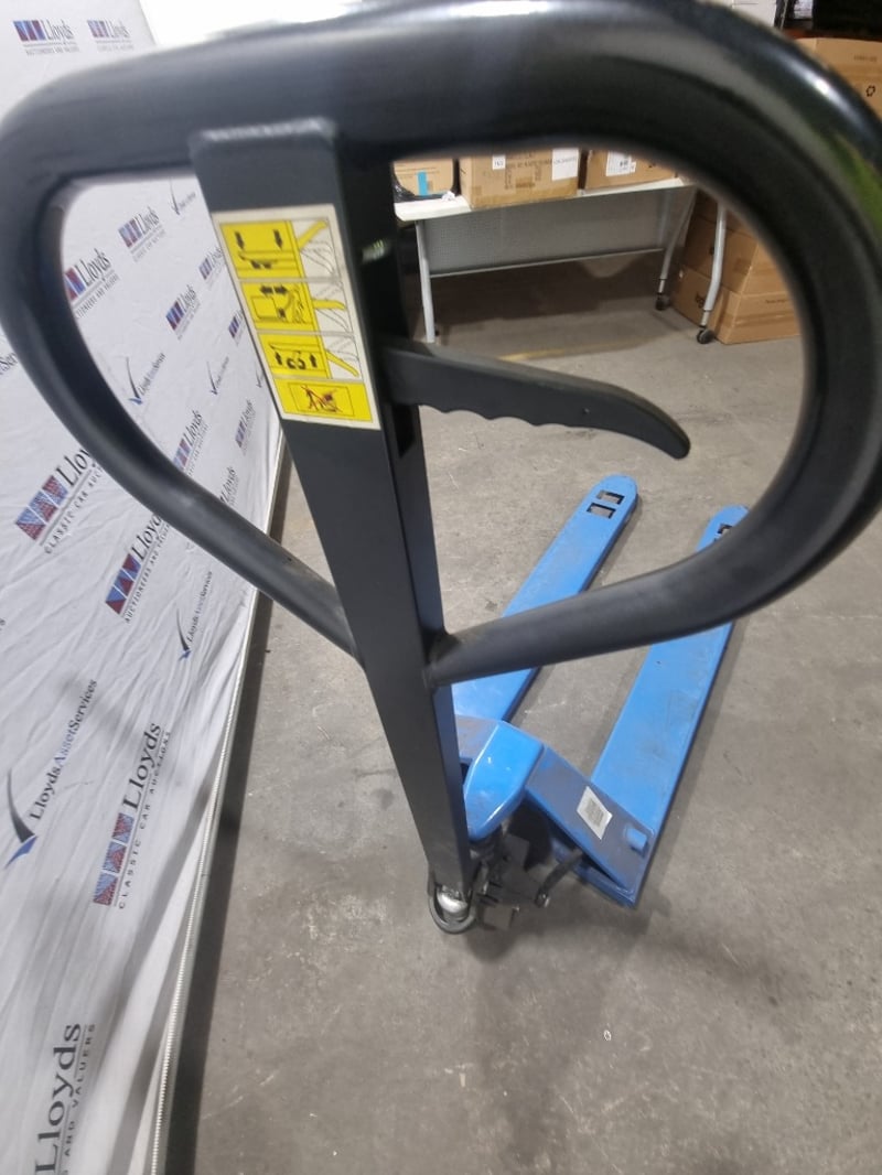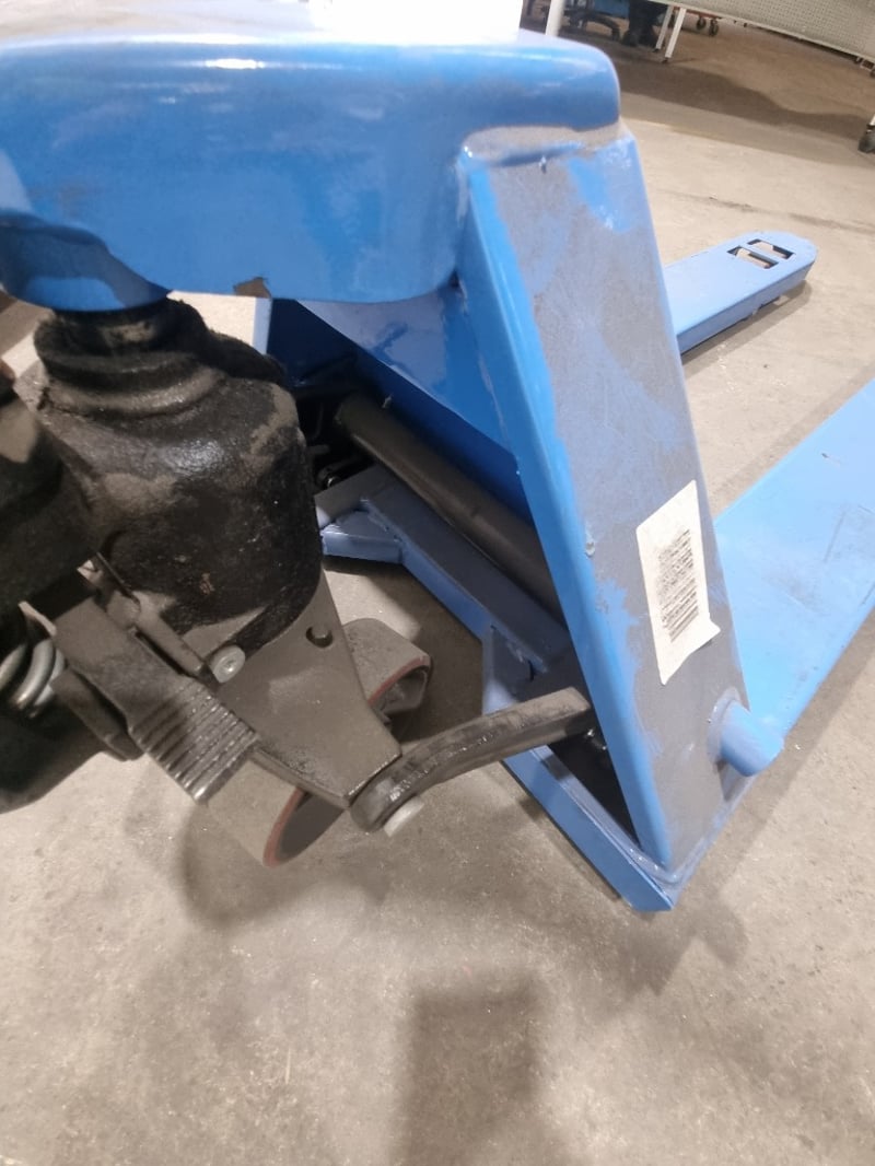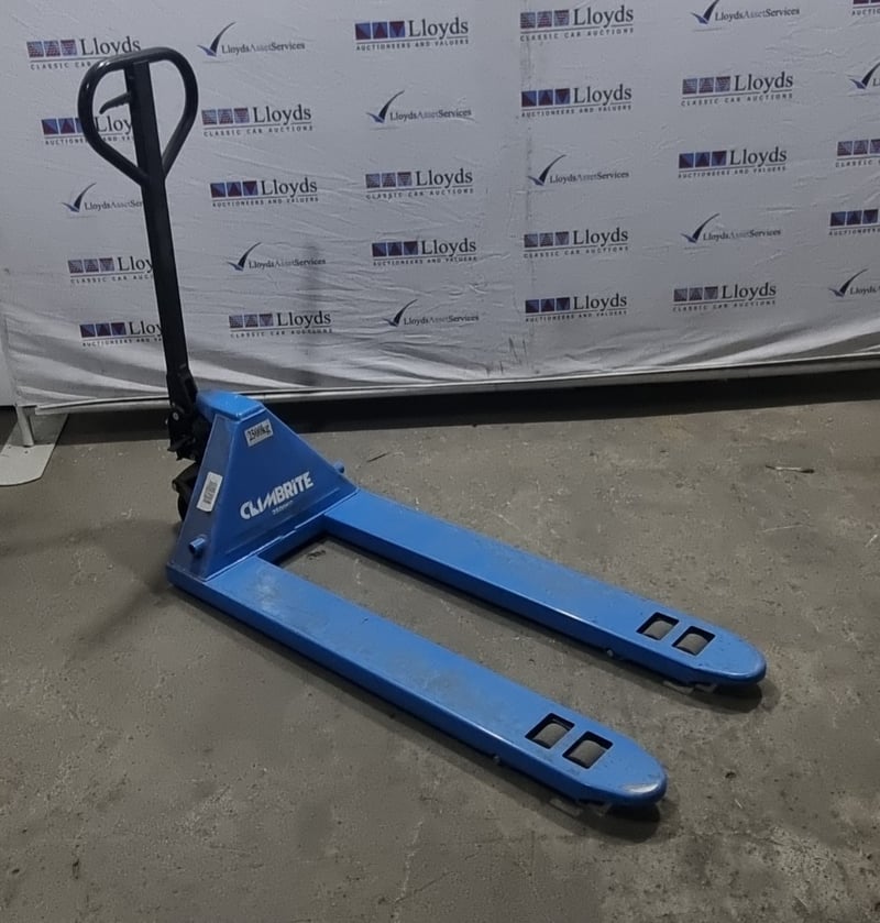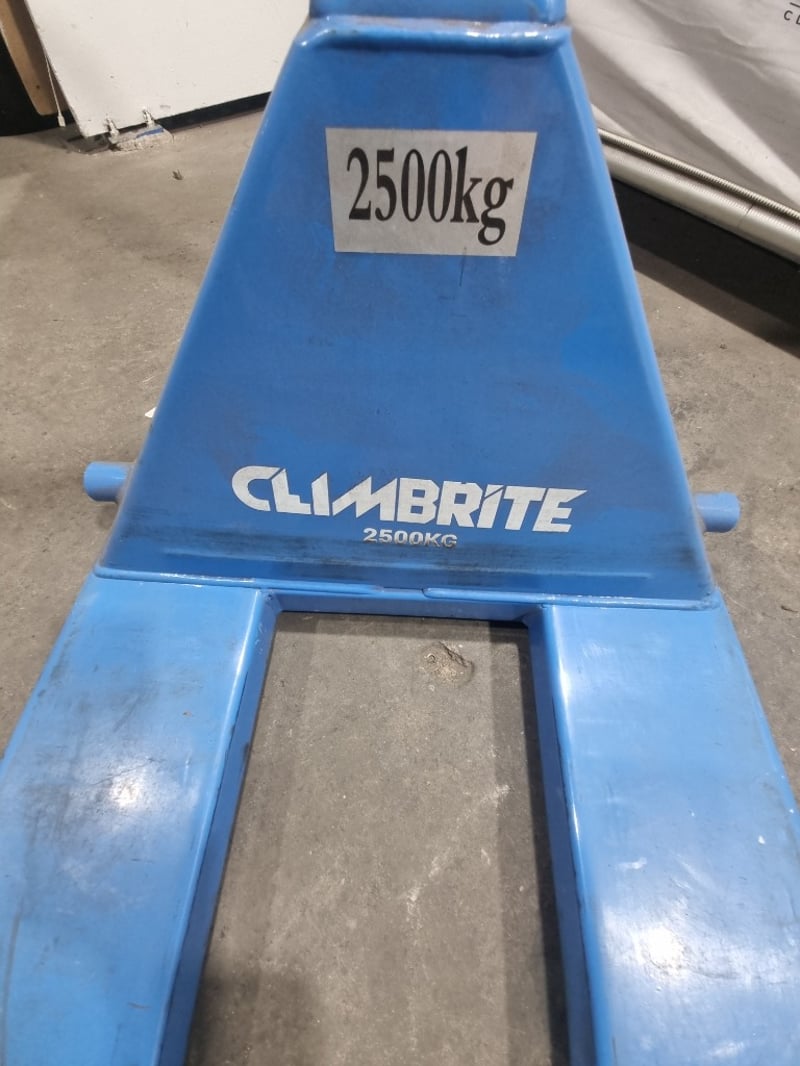 Climbrite 2500kg capacity manual pallet jack in bright blue finish.