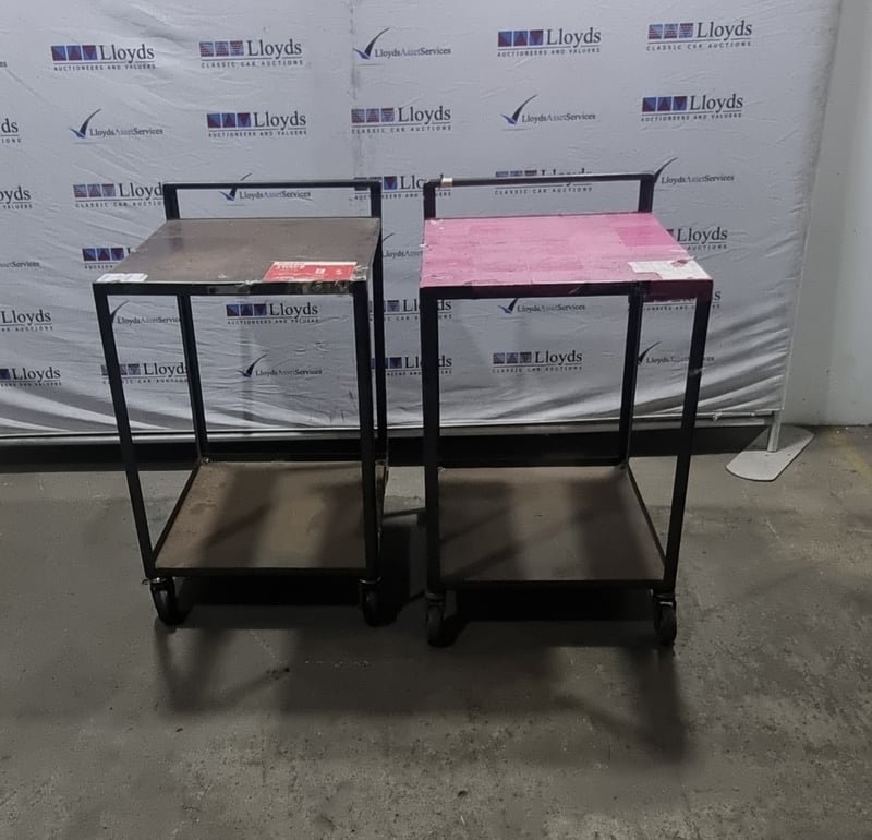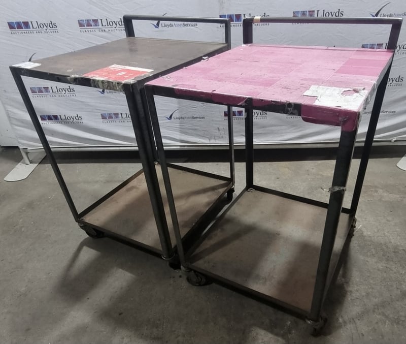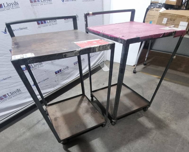 Industrial trolleys, metal, on mobile castors. Sold as lot Note: signs of wear