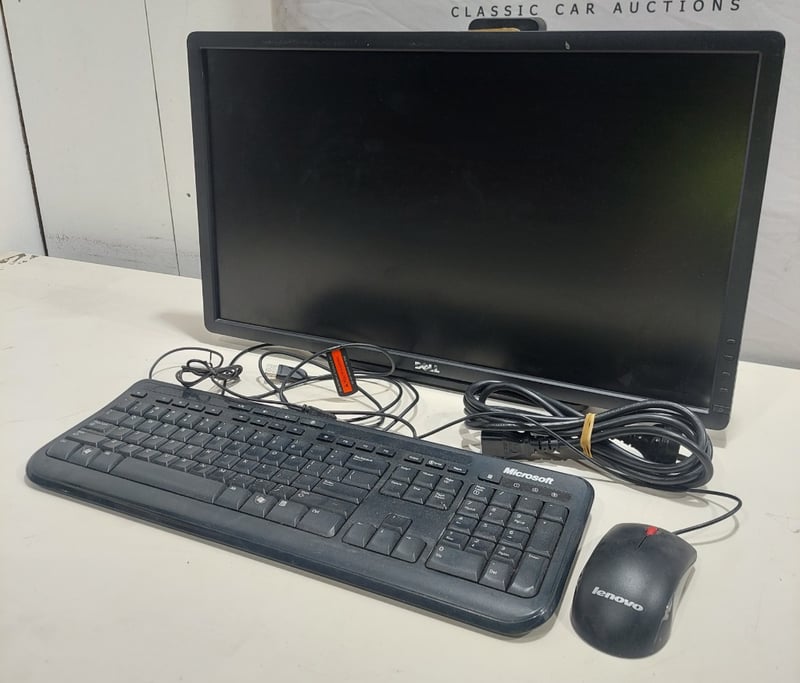 Office equipment lot includes, LCD Monitor Dell brand, Serial no: CN-OTOT38-74261-22I-1UTU, Keyboard Microsoft brand, mouse Lenovo brand and power cables.Sold as lot.Notes: items untested and signs of wear.