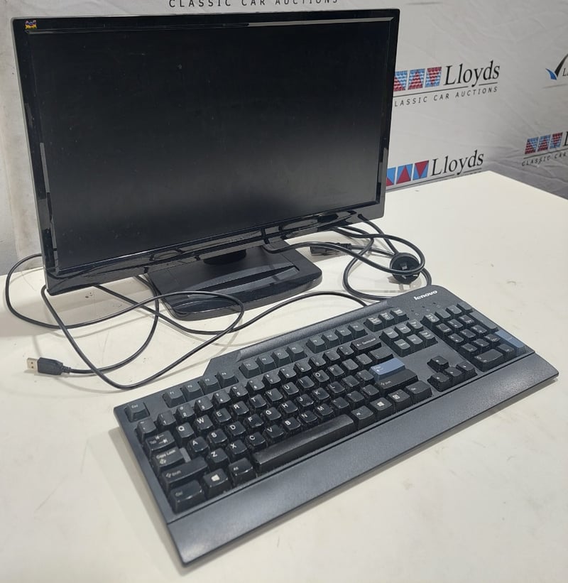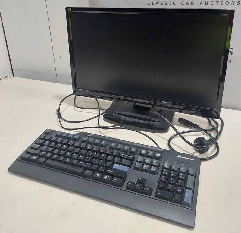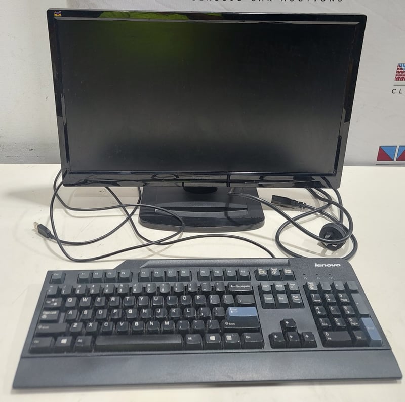 Office equipment lot includes, LCD Monitor Viewsonic brand, Serial no:TSZ141501982 Keyboard Lenovo brand and power cables.Sold as lot.Notes: items untested and signs of wear.