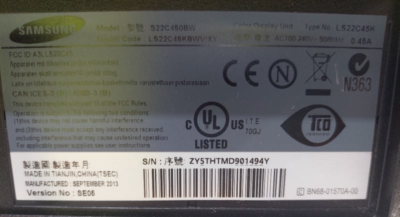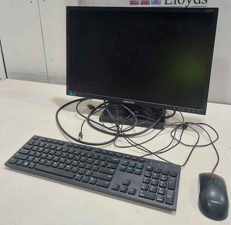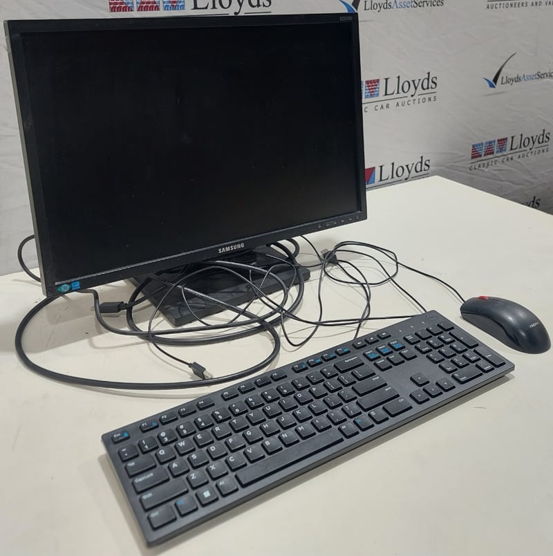 Office equipment lot includes, LCD Monitor Samsung brand, Serial no: ZY5THTMD901494Y Keyboard Dell brand, mouse Lenovo brand and power cables.Sold as lot.Notes: items untested and signs of wear.