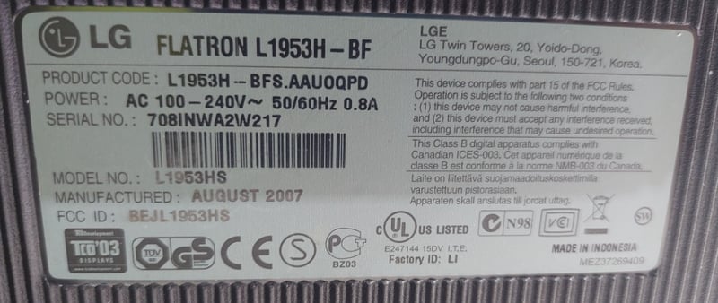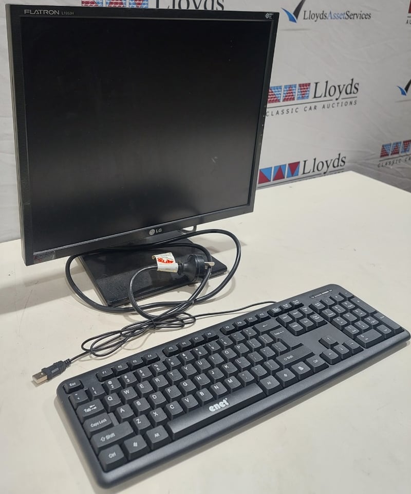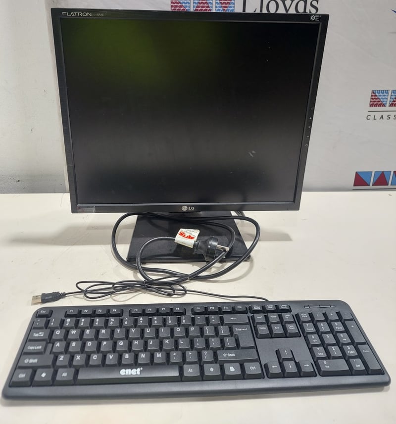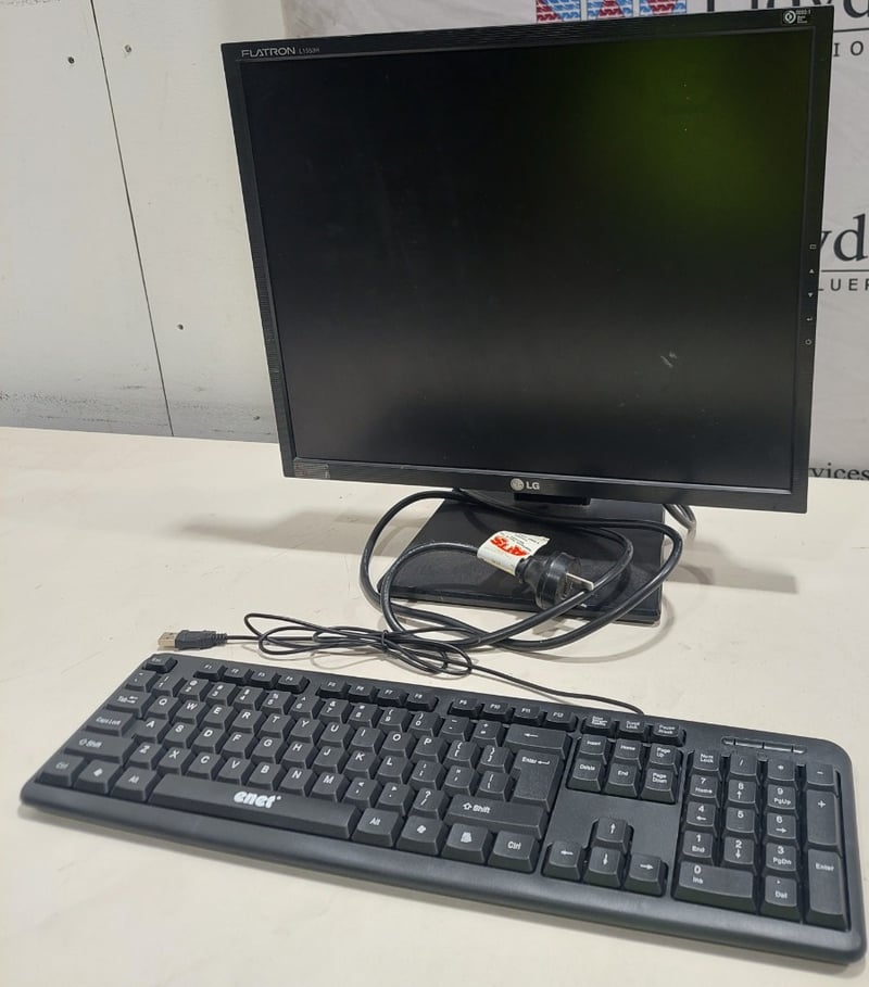 Office equipment lot includes, LCD Monitor LG brand, Serial no: 7081NWA2W217, Keyboard Enet brand and power cables.