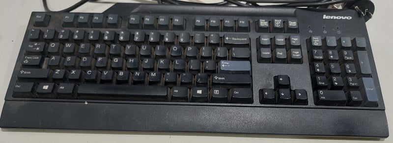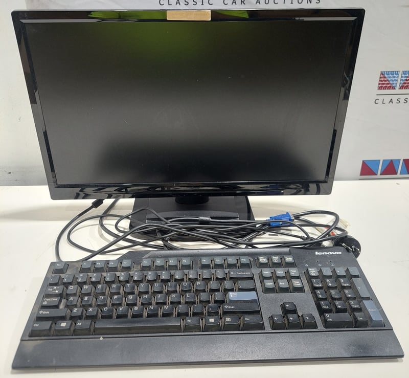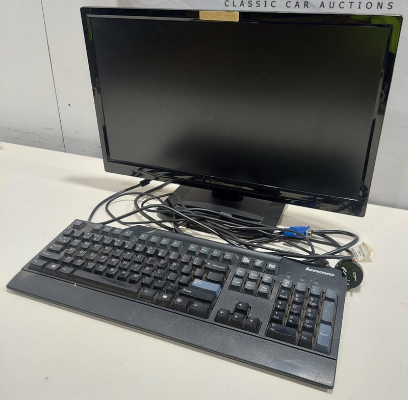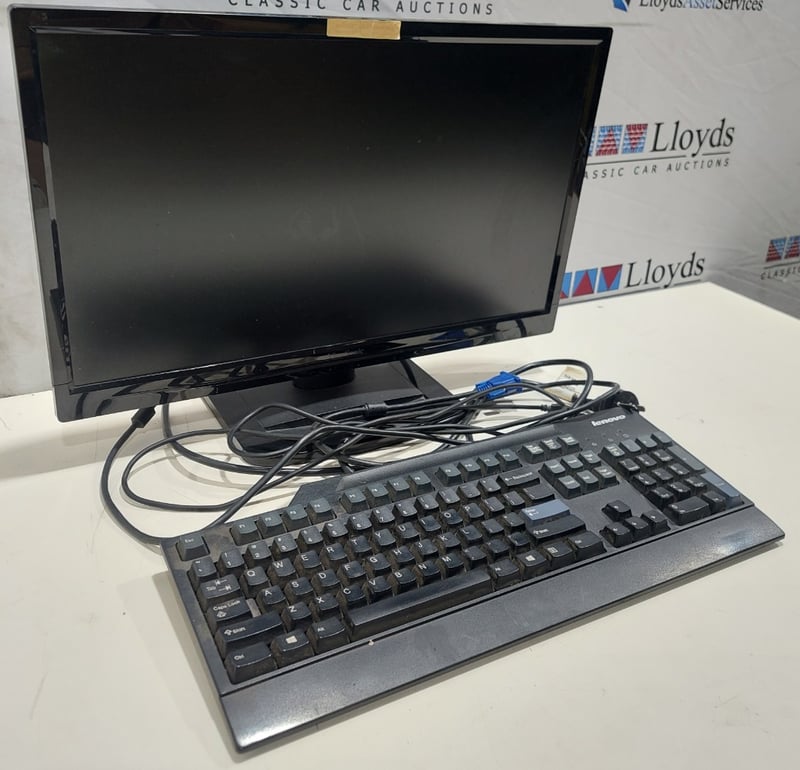 Office equipment lot includes, LCD Monitor Viewsonic brand, Serial no:TSZ141502003, Keyboard Lenovo brand and power cables.Sold as lot.Notes: items untested and signs of wear.