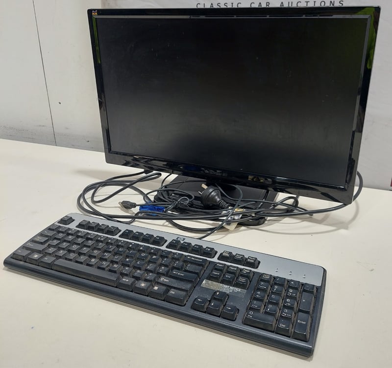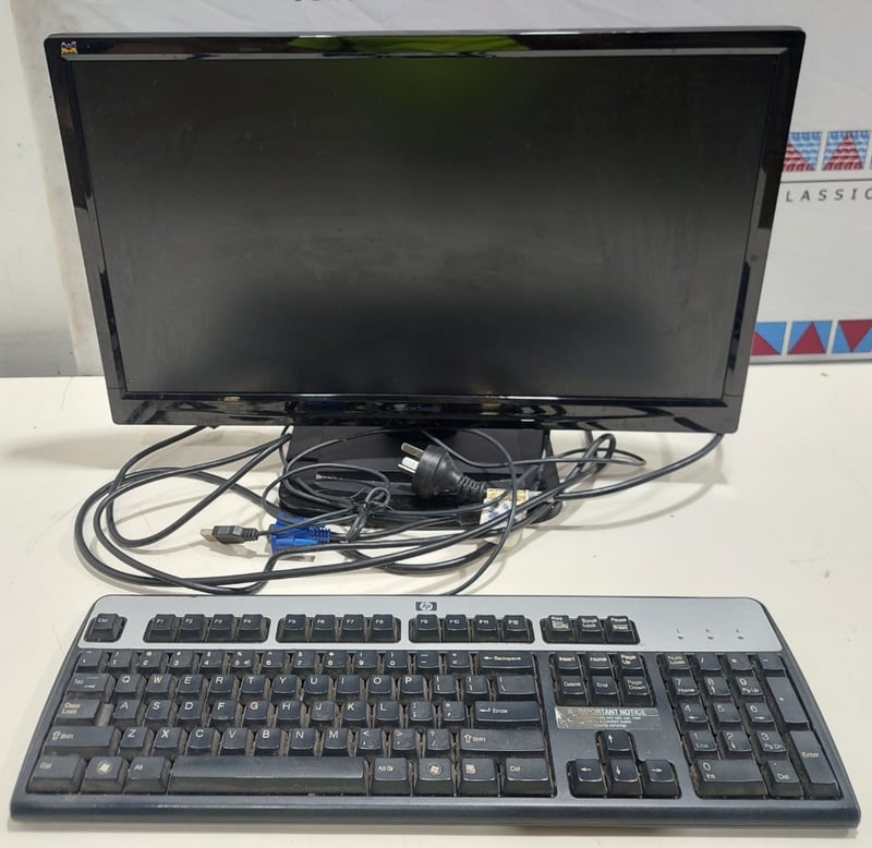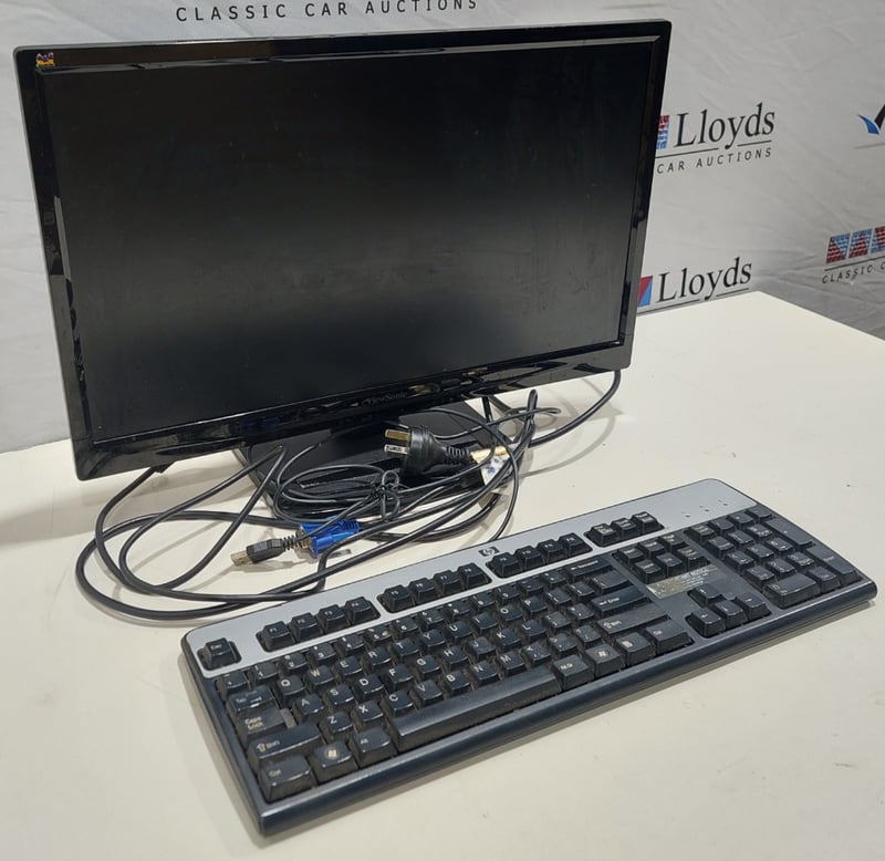 Office equipment lot includes, LCD Monitor Viewsonic brand, Serial no: TSZ141501985, Keyboard HP brand and power cables.