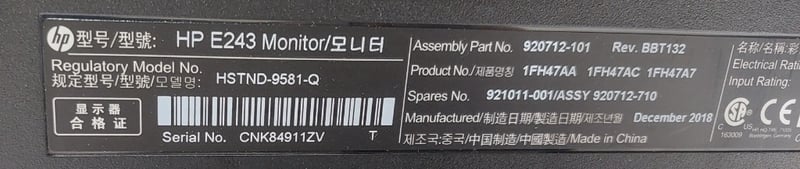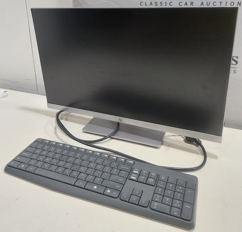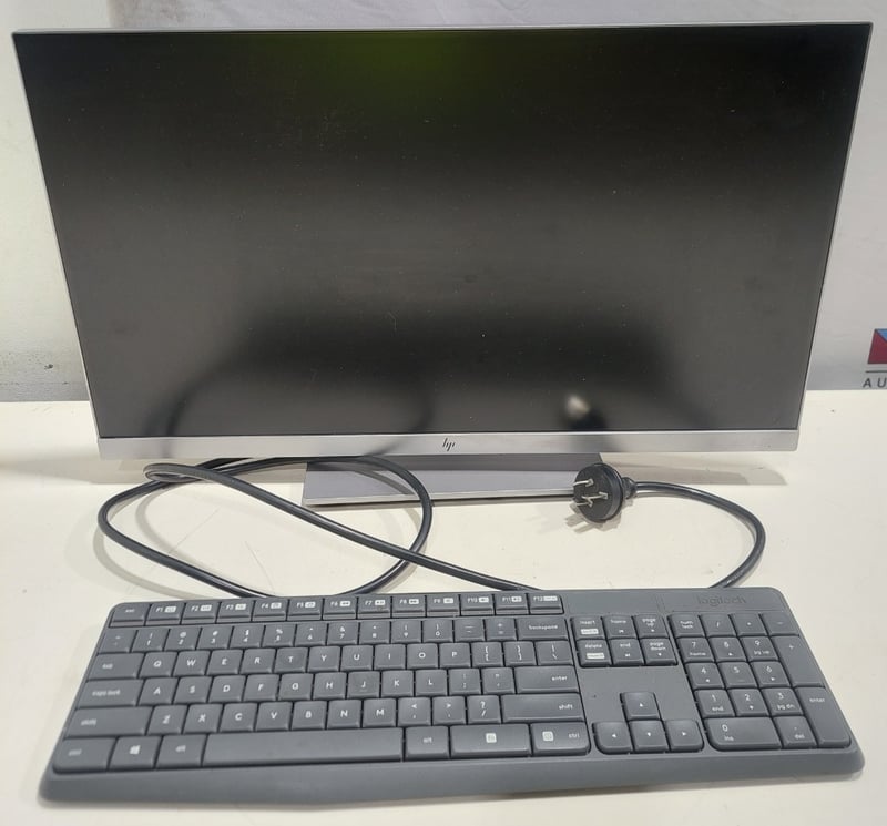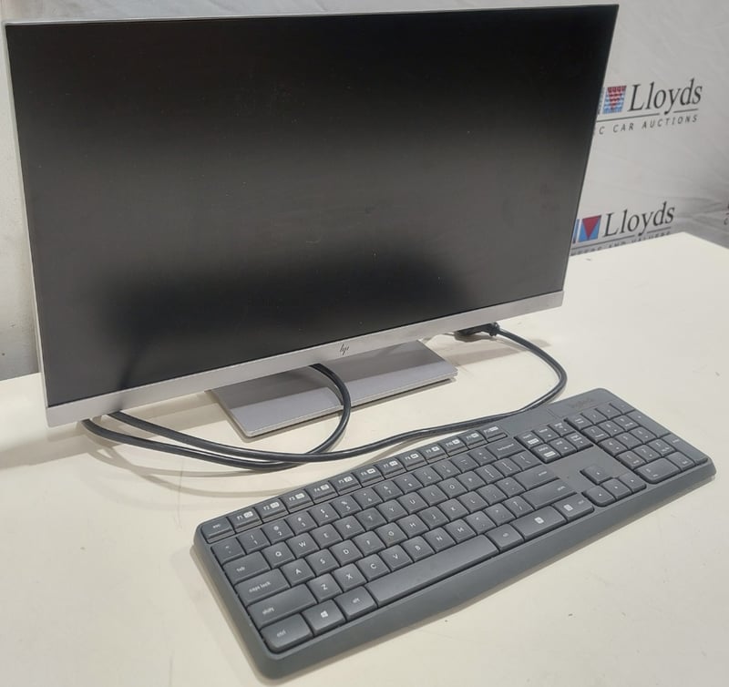 Office equipment lot includes, LCD Monitor HP brand, Serial no:CNK84911ZV Keyboard Logitech brand and power cables.