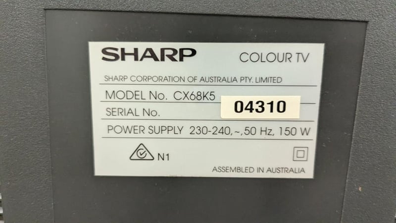 Colour TV, Sharp, CX68K5, 230-240V, 50Hz, 150W, S/N: 04310Note, Signs of wear, Untested